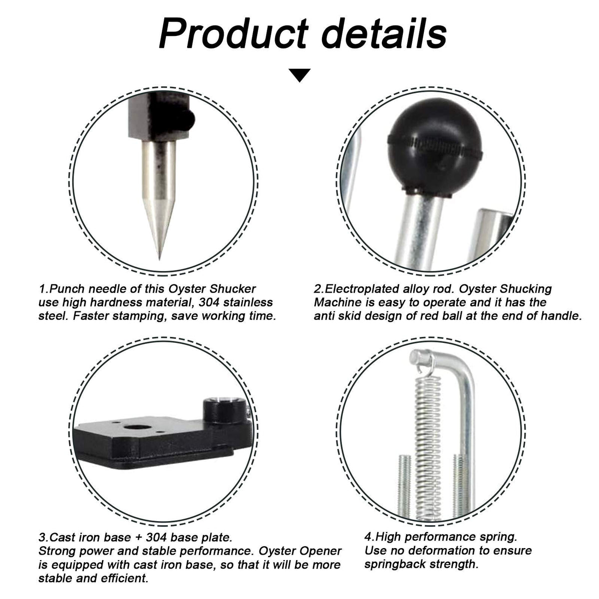 - Q: What materials are used in the construction of this oyster shucker? A: The oyster shucker features a punch needle made of high hardness 304 stainless steel, an electroplated alloy rod, and a cast iron base with a 304 base plate for durability.