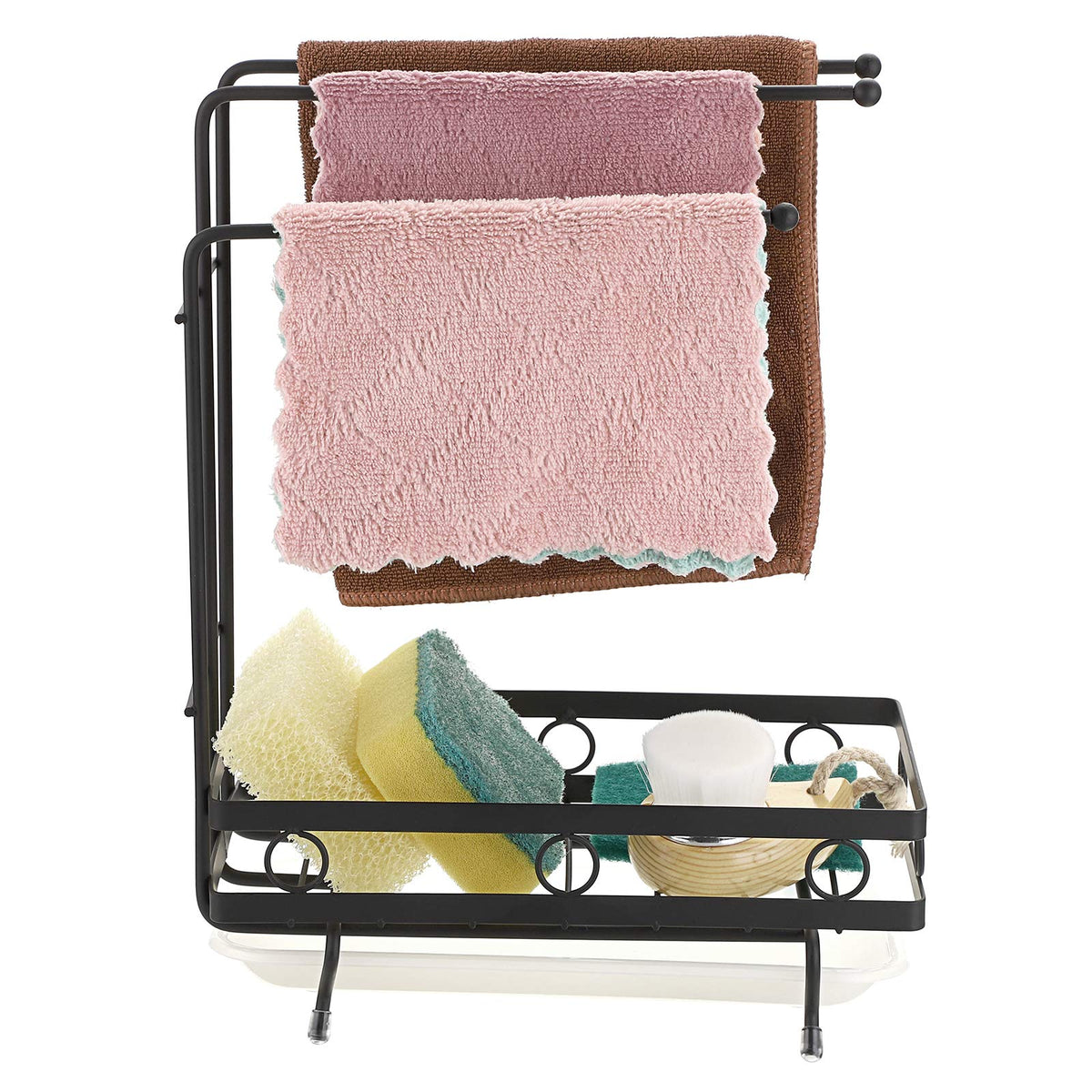 Juxyes Kitchen Sink Caddy Sponge Holder With Dishcloth Drying Rack, Kitchen Rag Stand Sponge Brush Soap Dish Dishcloth Rack Sink