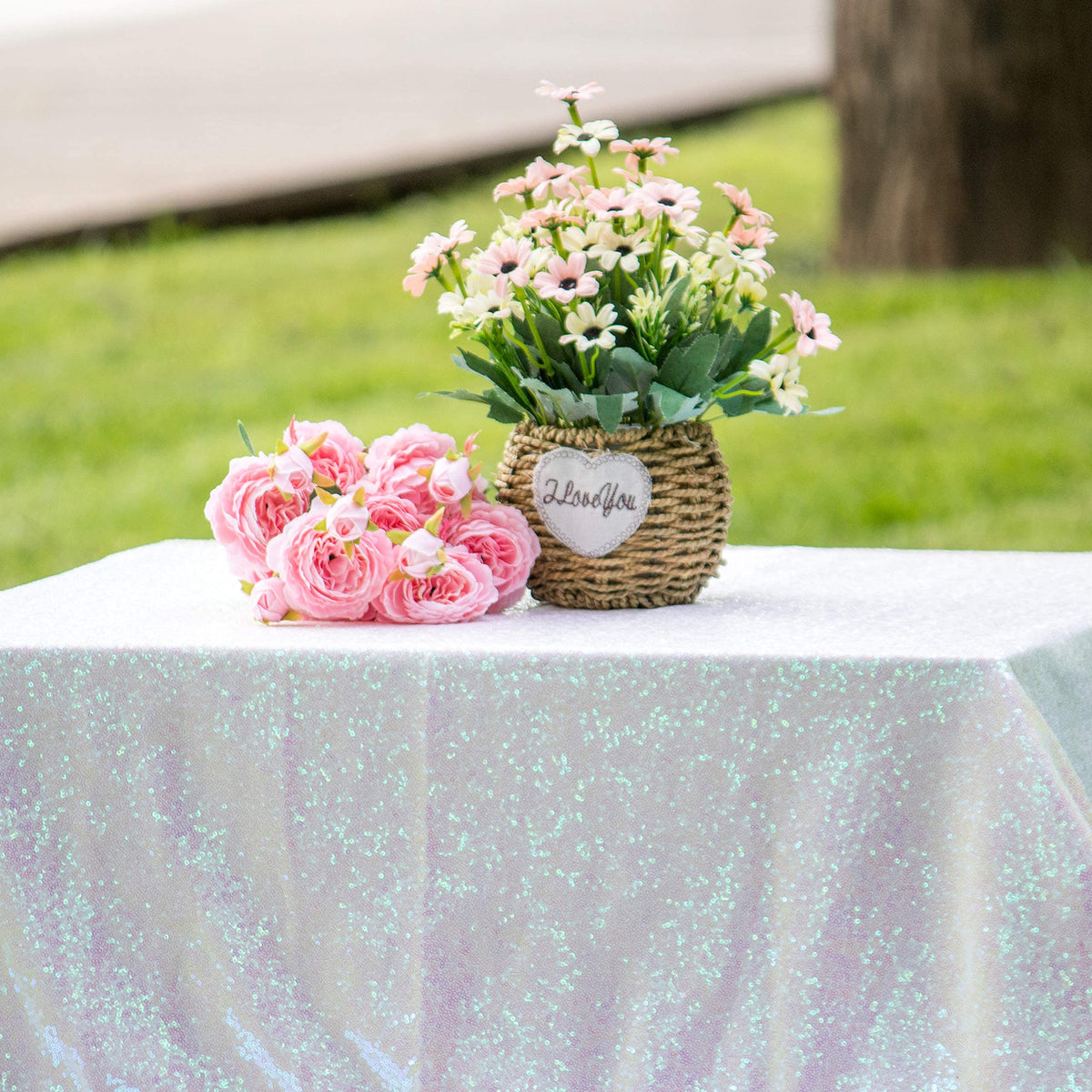Jyflzq White Iridescent Sequin Tablecloth 50'' X 80'' Rectangular Sparkly Drape Table Cloths Table Cover Overlay For Wedding Bir
