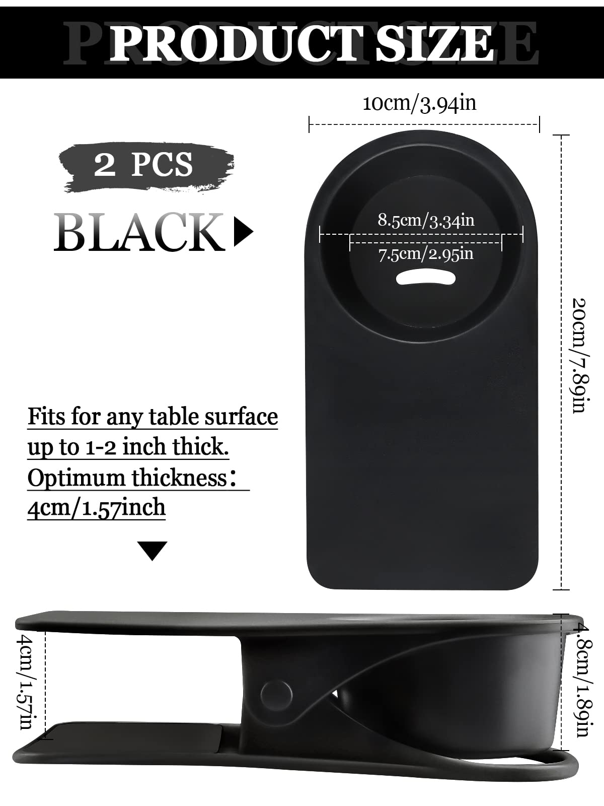- Q: What is the maximum thickness of the table the cup holder can attach to? A: The cup holder can attach to any table surface up to 1 and a half inches thick.