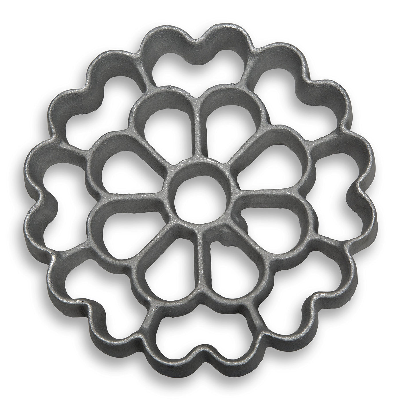 • Q: What is the Kitchen Supply 2-in-1 Spanish Rosette made of? A: The Kitchen Supply 2-in-1 Spanish Rosette is made from high-quality, food-safe aluminum that is hand-cast in the USA.