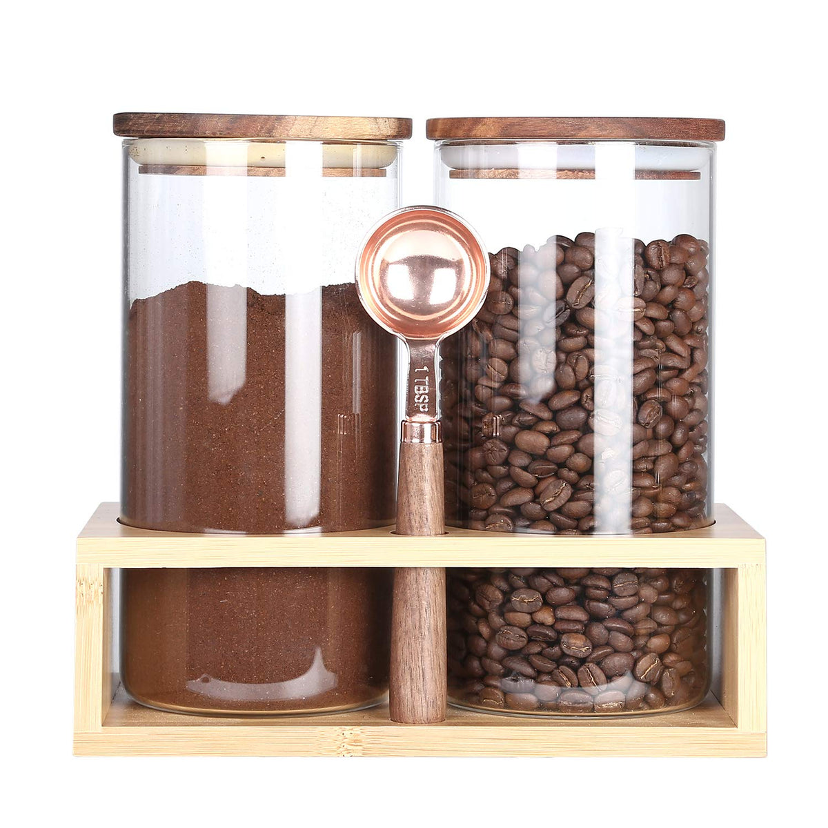 Kkc Home Accents Coffee Beans Storage Canisters With Airtight Lids,Glass Storage Jars For Grinder Coffee,Loose Tea,Matcha,Nuts