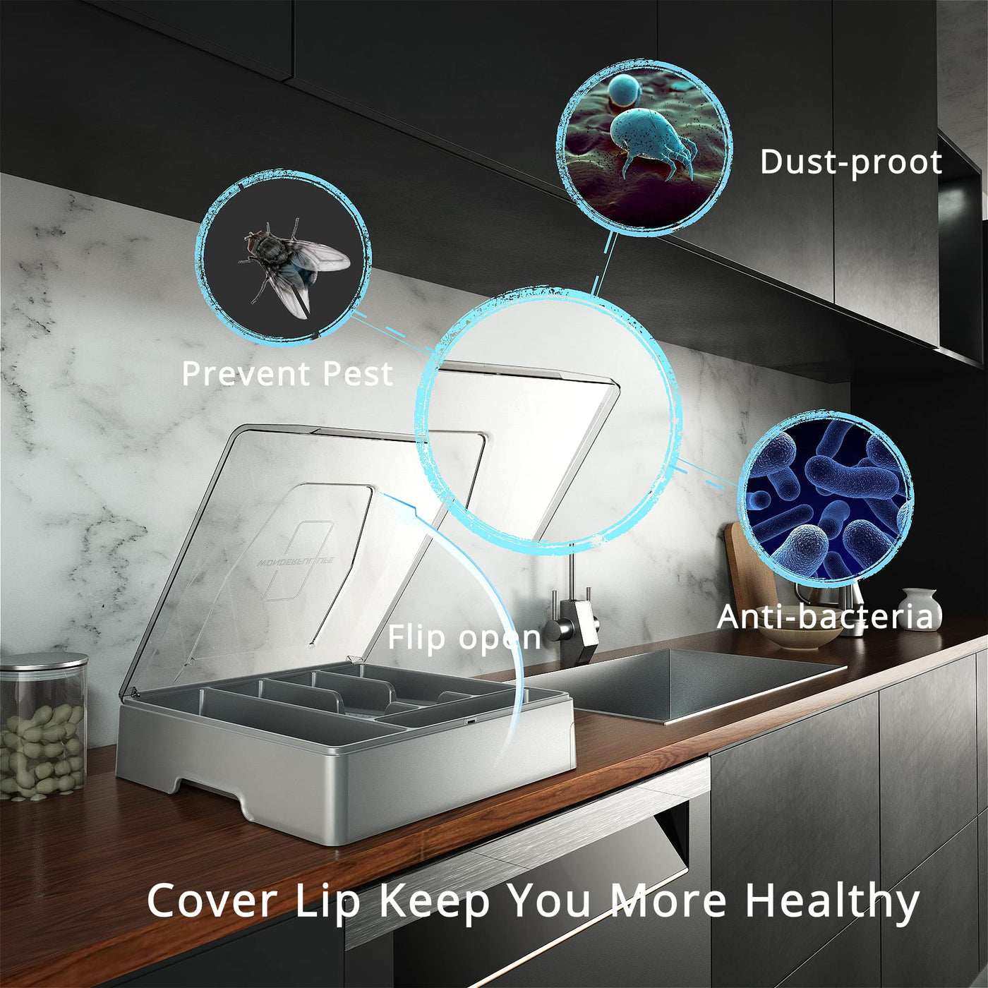 • Q: Does the organizer have a lid? A: Yes, the Kurberson Double Layer Silverware Organizer comes with a cover lid that helps keep dust and debris out, ensuring a clean storage environment.