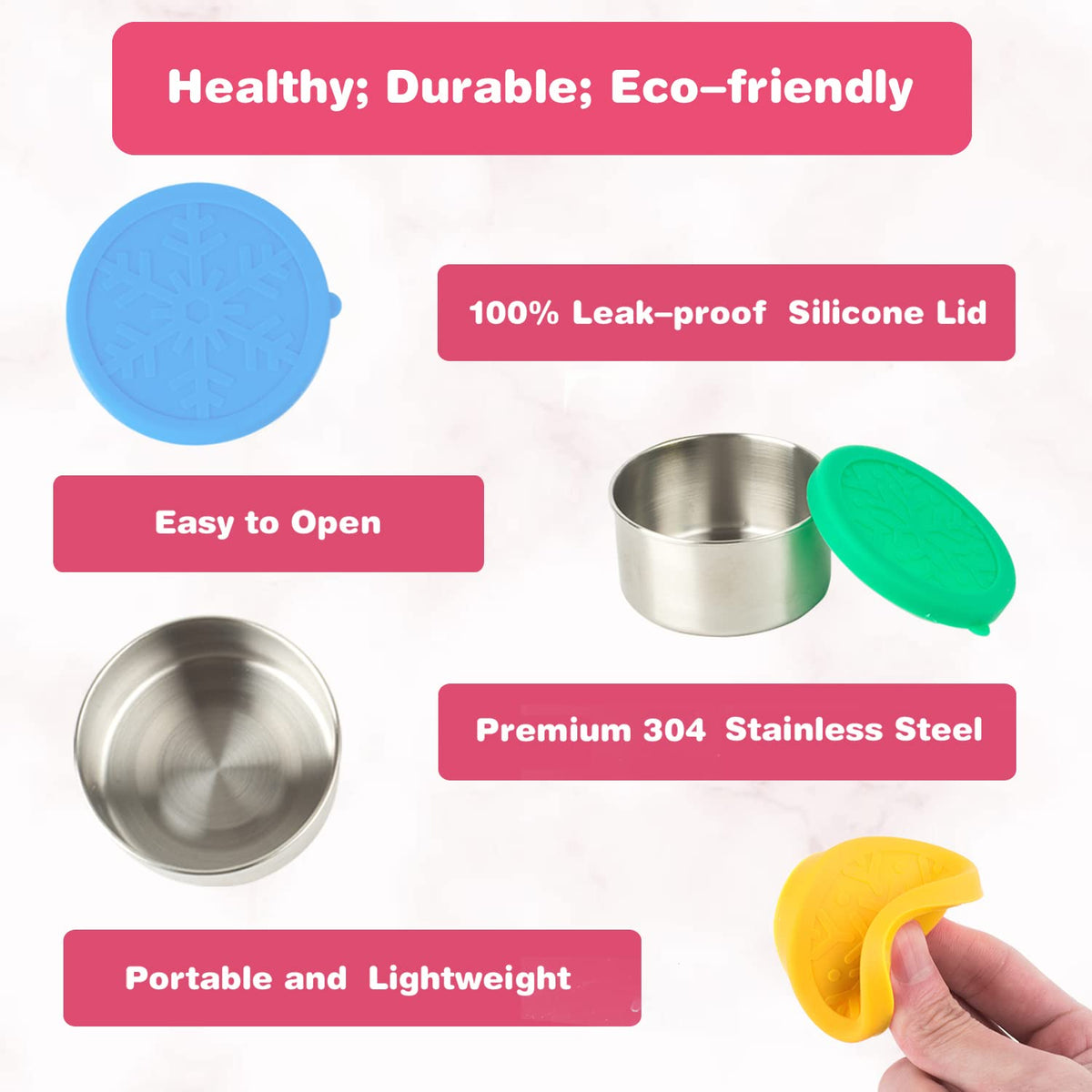 Lalastar Stainless Steel Food Containers With Lids, Set Of 3 Reusable Snack Containers (110 Ml, 220Ml, 400Ml), Leakproof Silicon