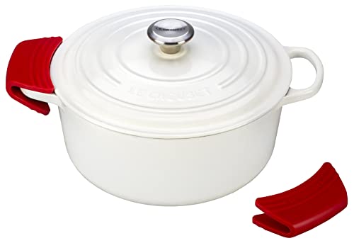 • Q: What material are the Le Creuset handle grips made of? A: The handle grips are made from 100% silicone, which is durable and heat-resistant.