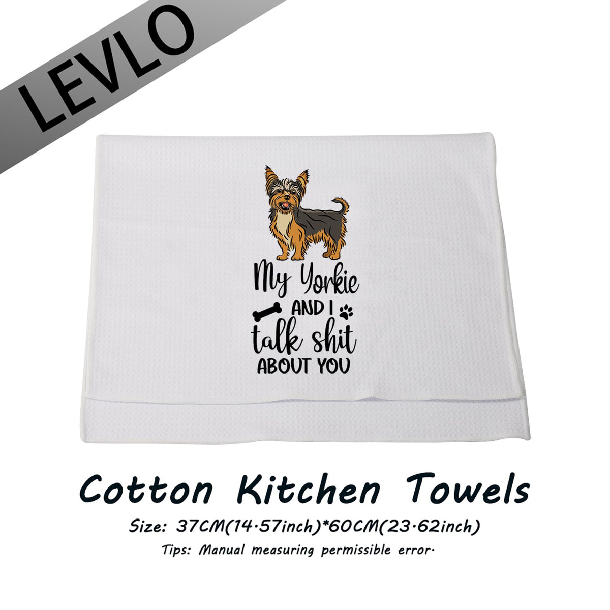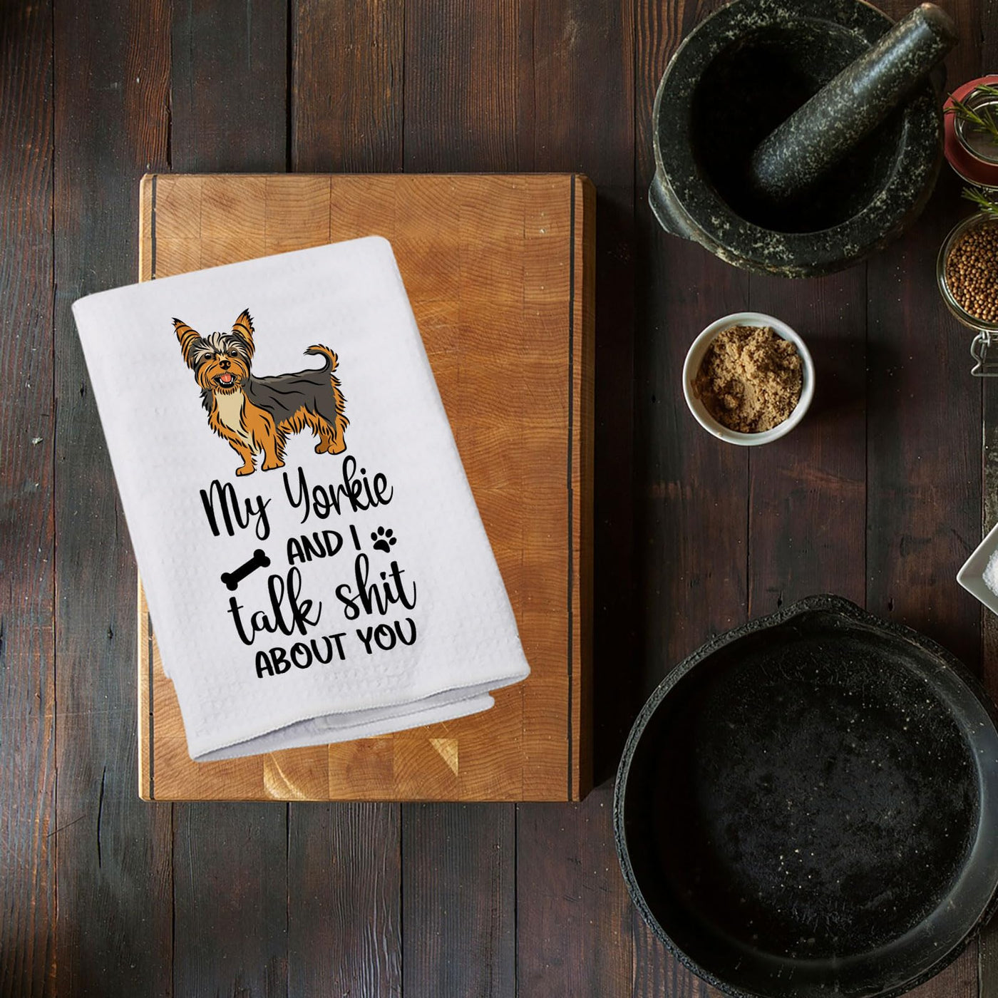 Levlo Yorkie Lovers Gift My Yorkie And I Talk Shit About You Kitchen Towel Dog Owner Dish Towel(My Yorkie)