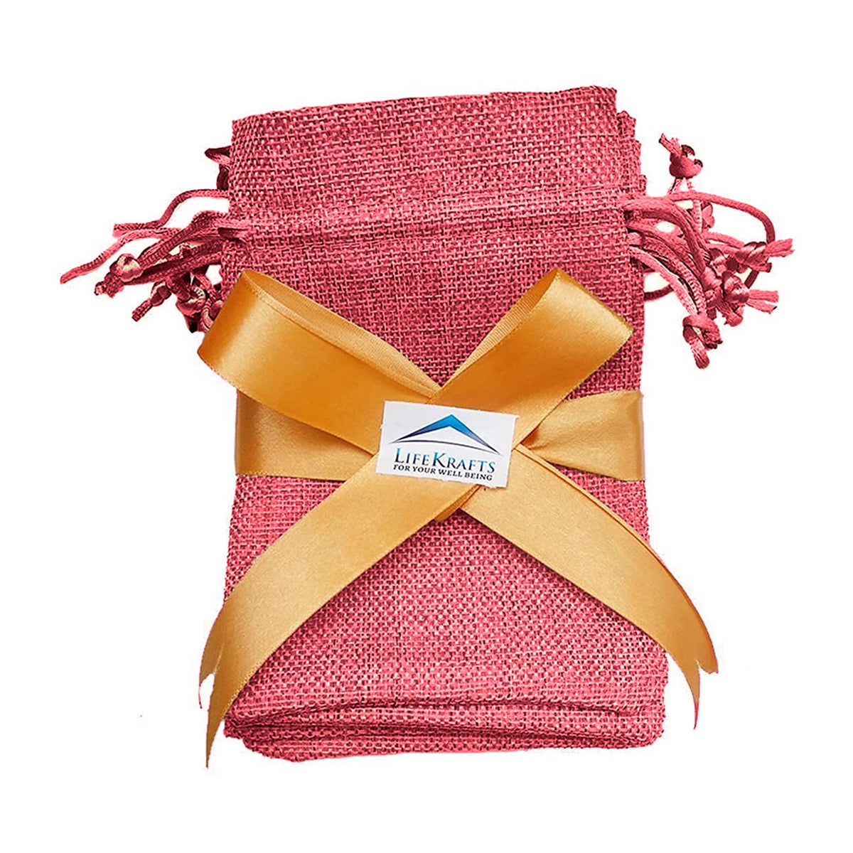 Lifekrafts Pink jute Linen Pouches Birthday and Party Favour Bags Potlis for Functions, Baby Showers, Candy Bags Size-20x25 cm (