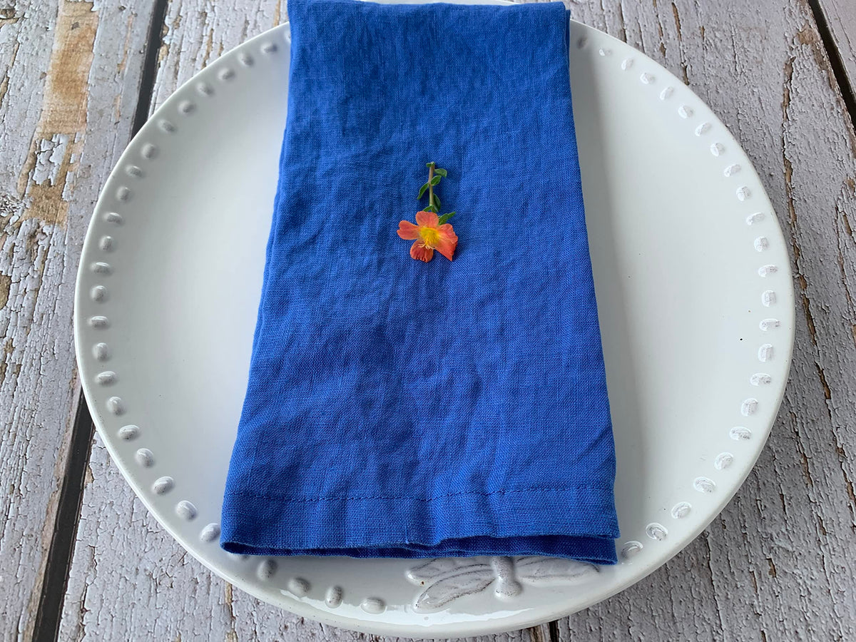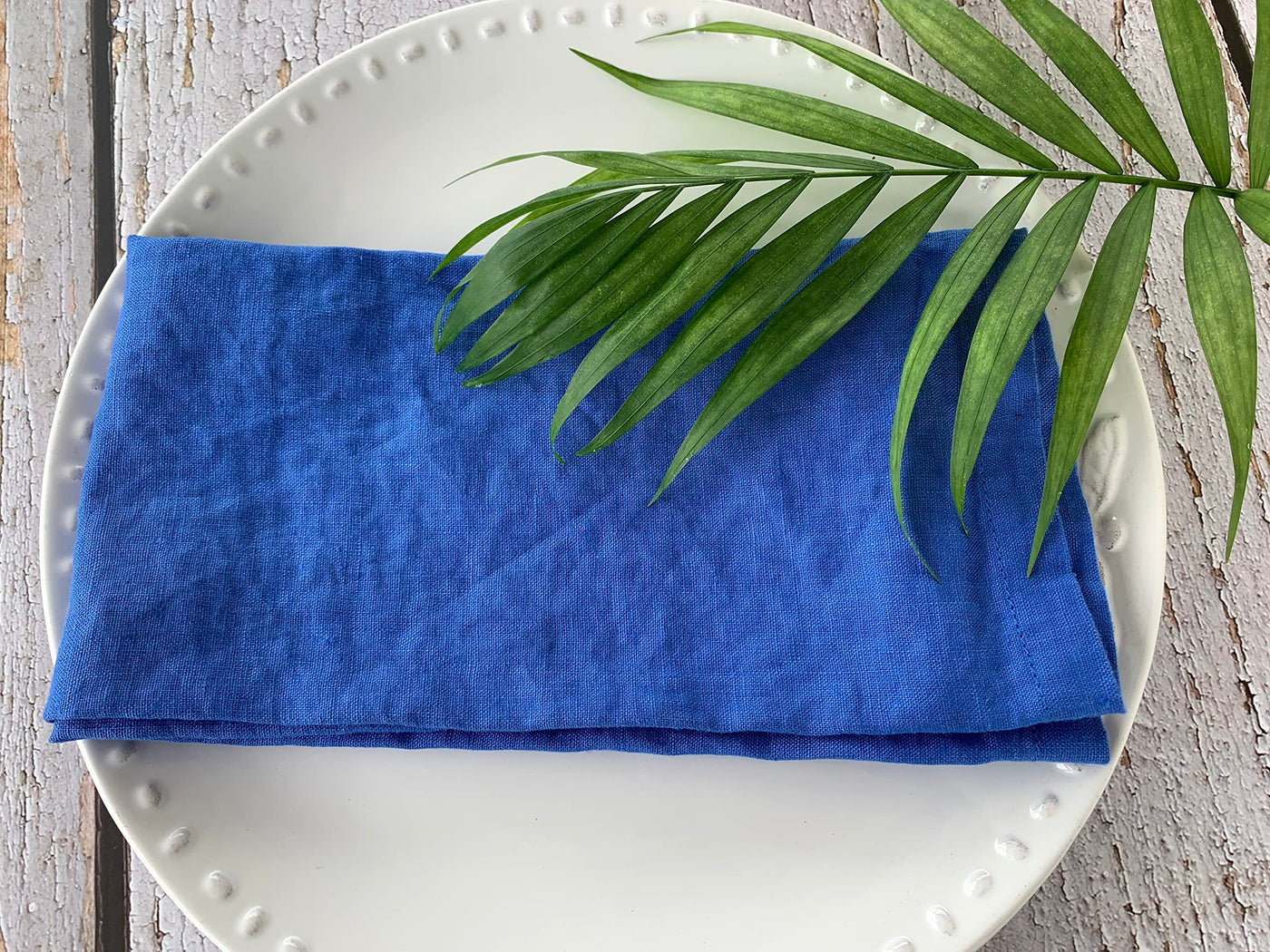 Linen Napkins -100% French Flax - Stonewashed Pure Linen Cloth Napkins - Size 18 Inch X 18 Inch - Set Of 4, Tropics (Blueberry)