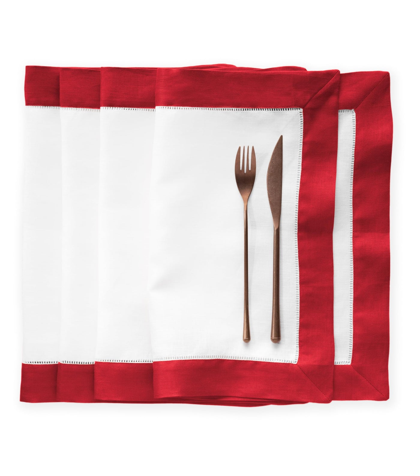 Linen Placemats Set Of 4-100% Flax Linen White And Red Placemats 14 X 19 Inch - Classic Hemstitch Placemats Washable For Fall, H