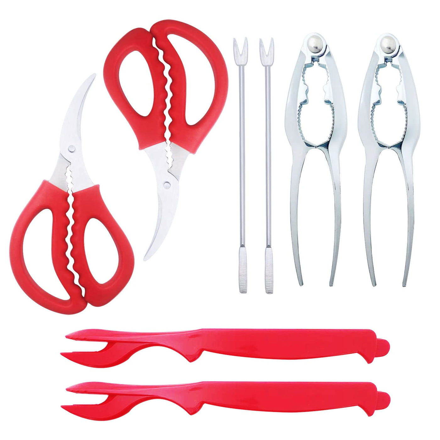 Luckkyme Seafood Tools, Lobster Crab Crackers Lobster Shellers Seafood Forks Seafood Forks(8 Pieces, Red)