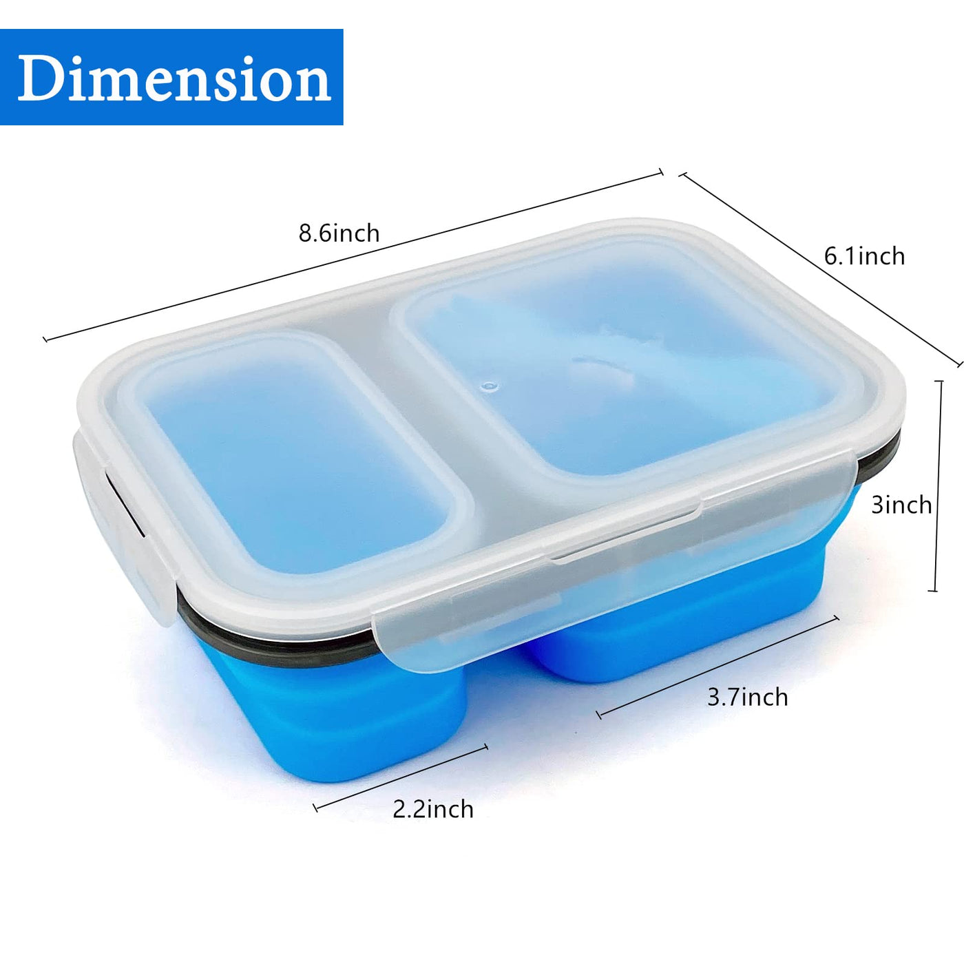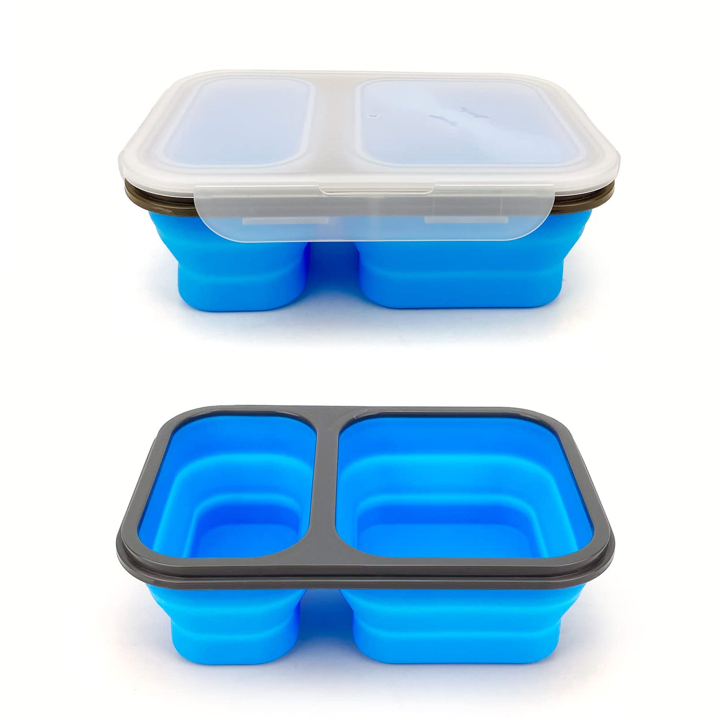 Lunbengo 2 Compartments Collapsible Airtight Bento Box With Ideal Portion 600Ml & 450Ml And 2 In 1 Spoon & Fork, Food Grade Sili