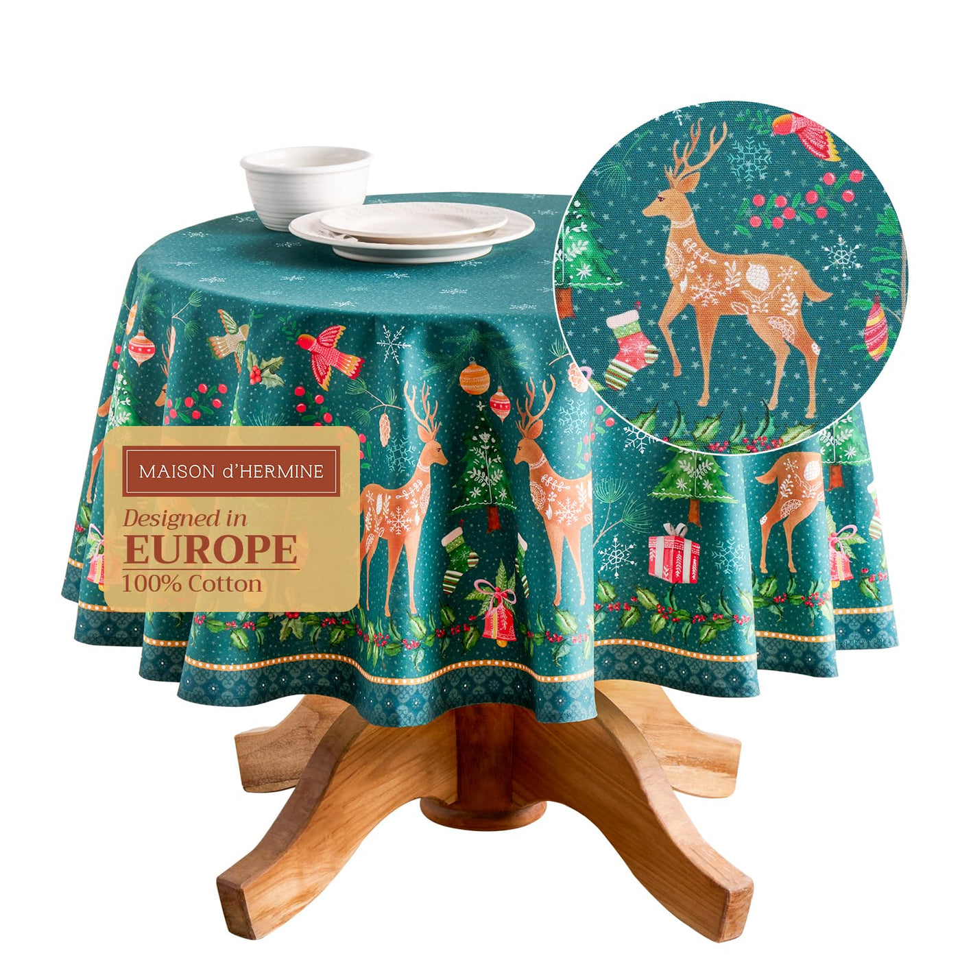 Maison D' Hermine 100% Cotton Table Cover - 69 Diameter Round Decorative Tablecloth - Tablecloths For Dining, Home, Farmhouse