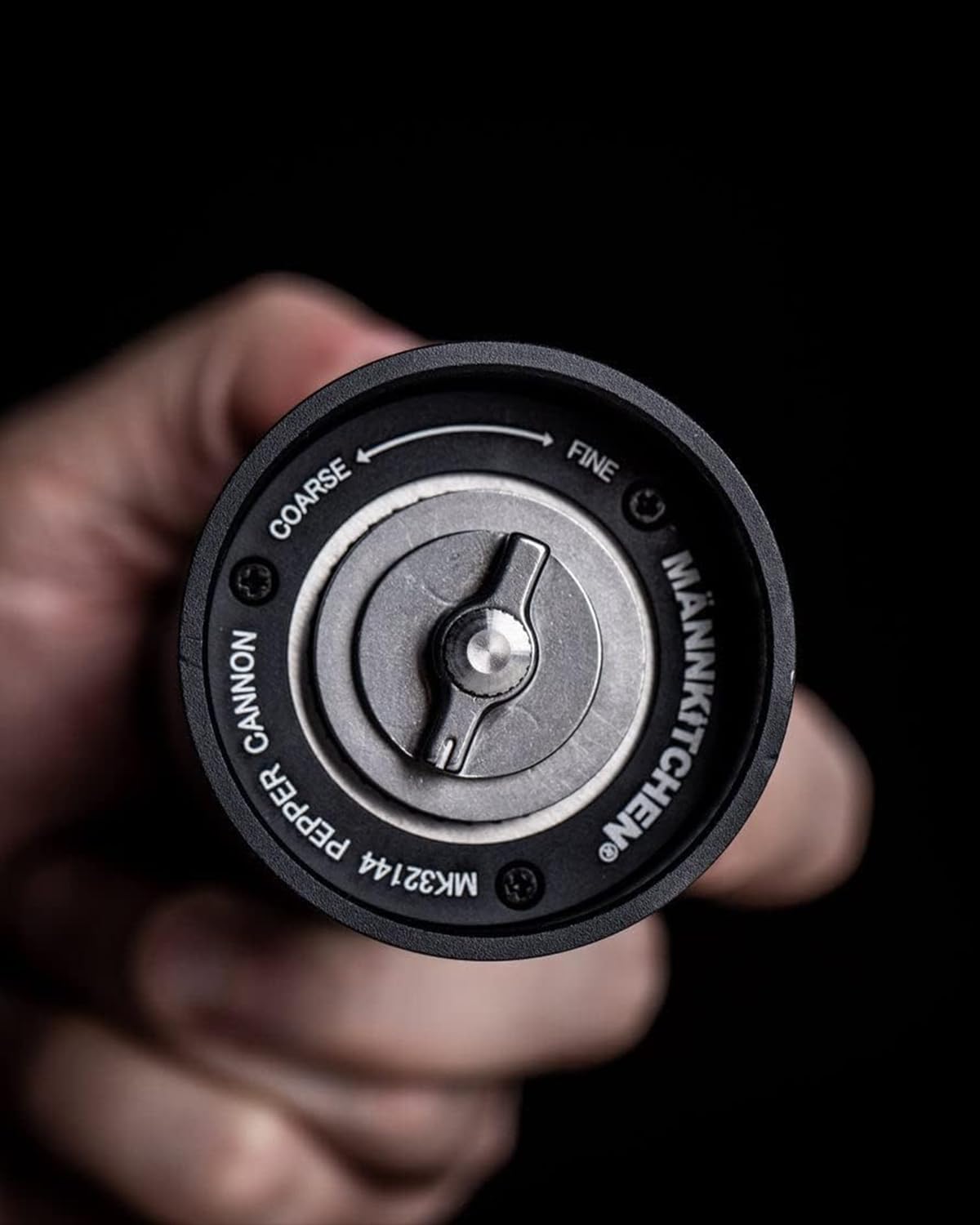 • Q: What is the grind range of the MANNKITCHEN Pepper Cannon? A: The MANNKITCHEN Pepper Cannon offers a super wide grind range, allowing you to adjust from cracked pepper to a fine powder.
