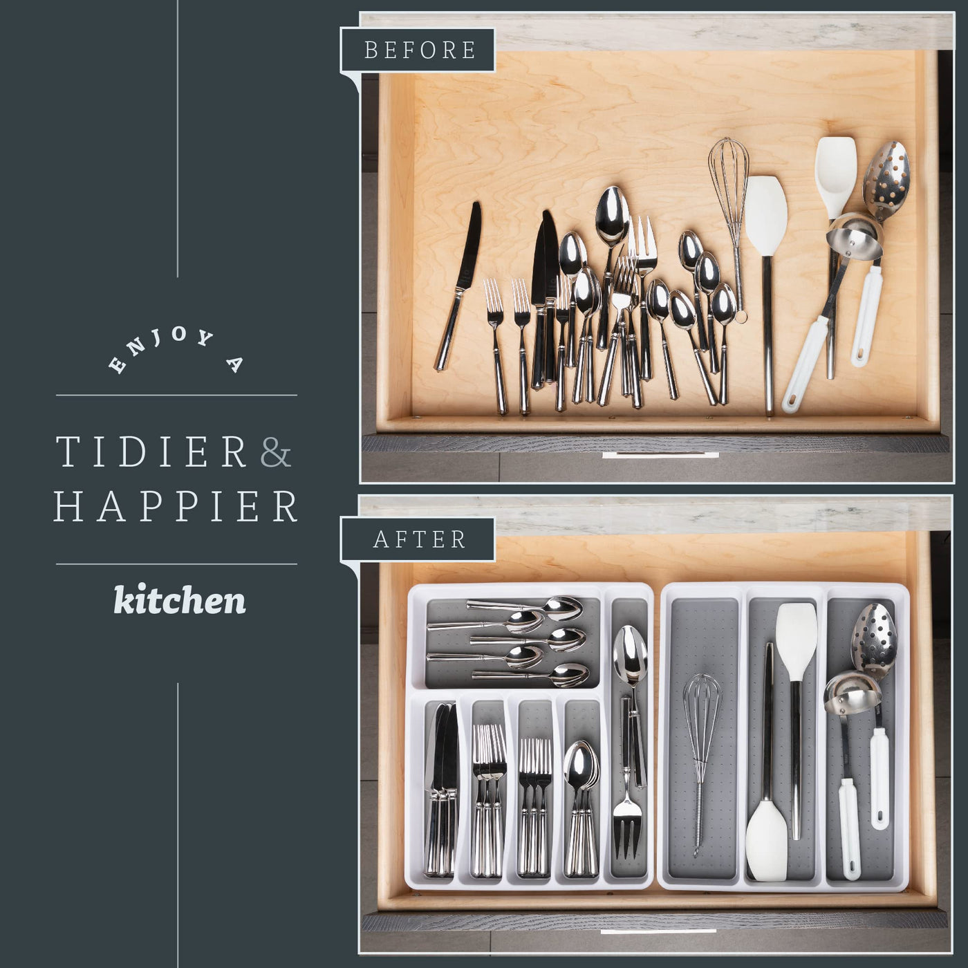 Masirs No-Slip Silverware Tray Organizer, Accommodates Different Kitchen Utensil And Cutlery Sizes, Deep Enough To Fit Entire Dr