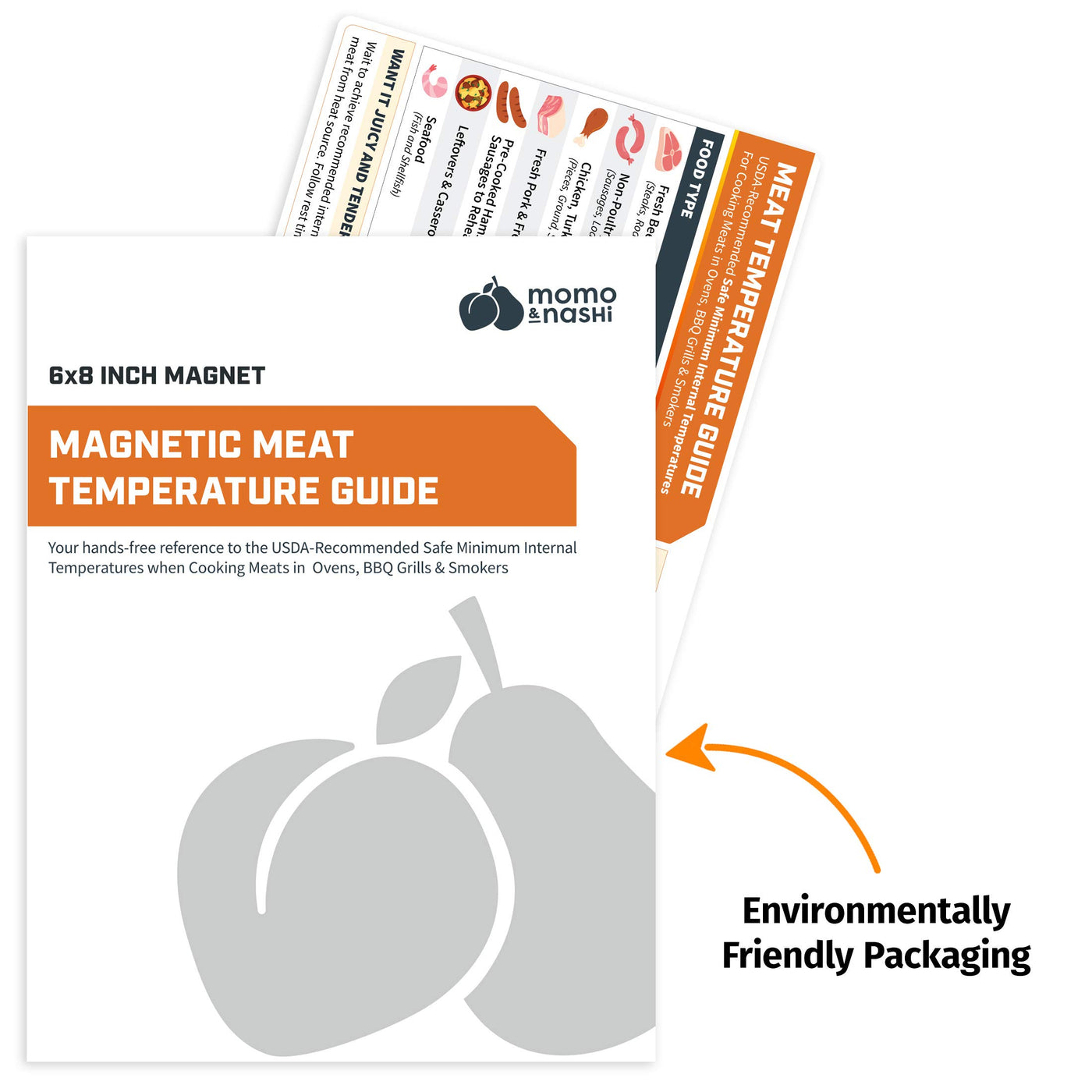 - Q: How durable is the Meat Temperature Chart Magnet? A: The chart has a glossy, water-resistant finish and an easy-clean surface, designed to maintain its appearance after multiple wipes.