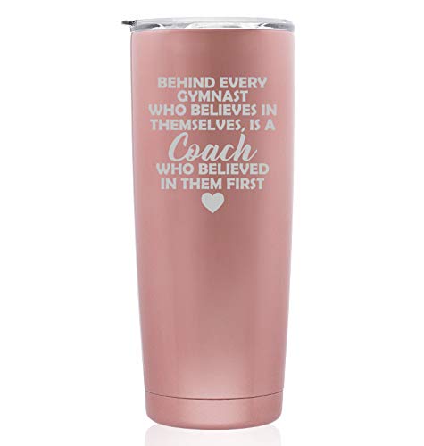 Mip Brand Rose Gold Double Wall Vacuum Insulated Stainless Steel Tumbler Travel Mug Gymnastics Coach Gift (Skinny 20 Oz)