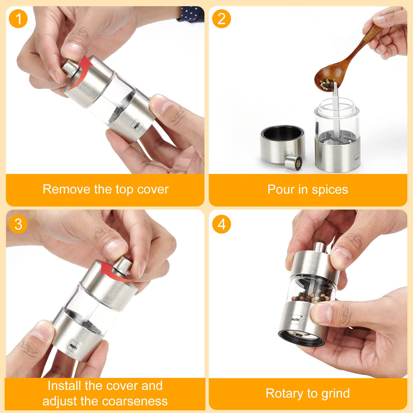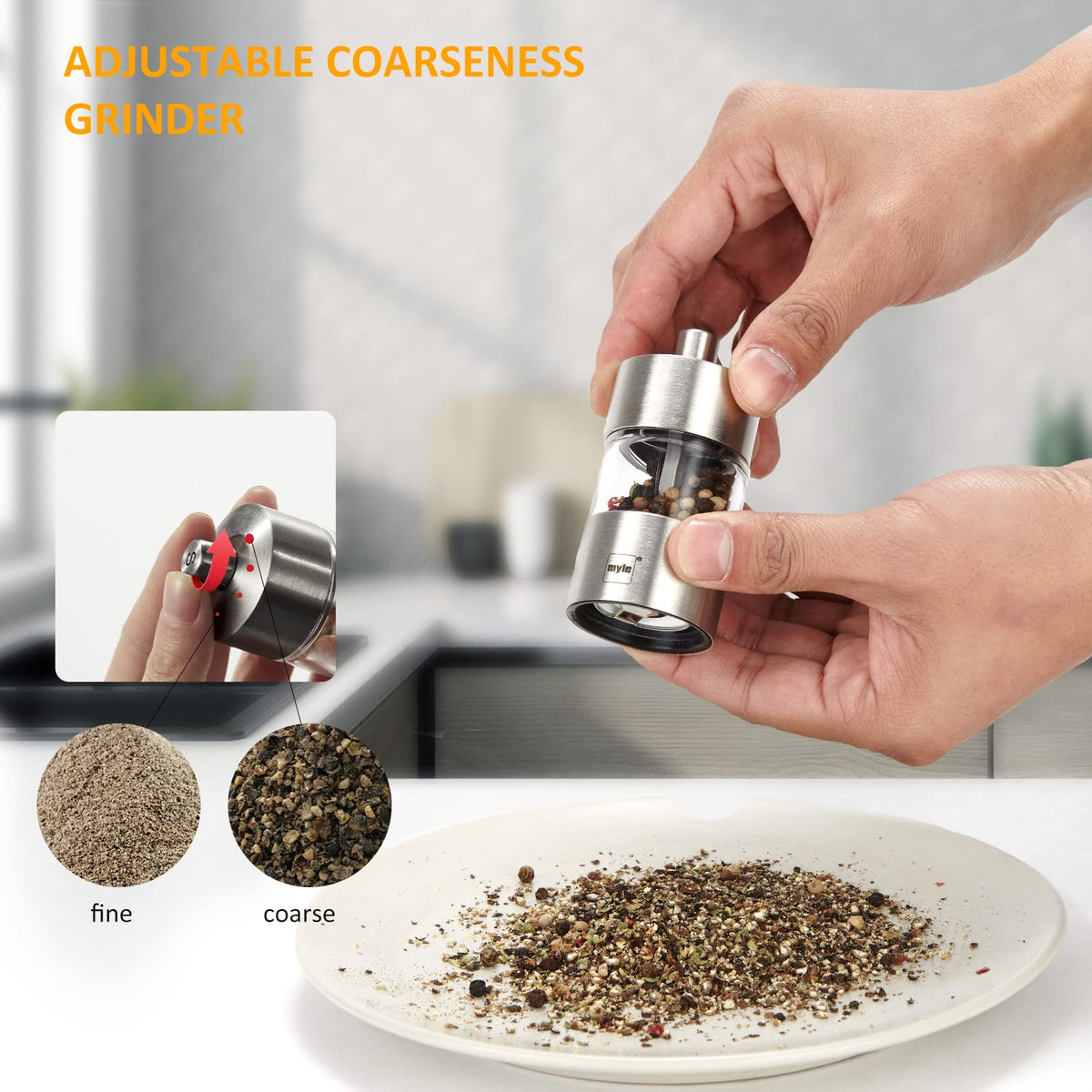 Myle Salt And Pepper Grinder Set Small Refillable Stainless Steel Pepper Grinder Mini Adjustable Ceramic Grinder Manual Salt Gri