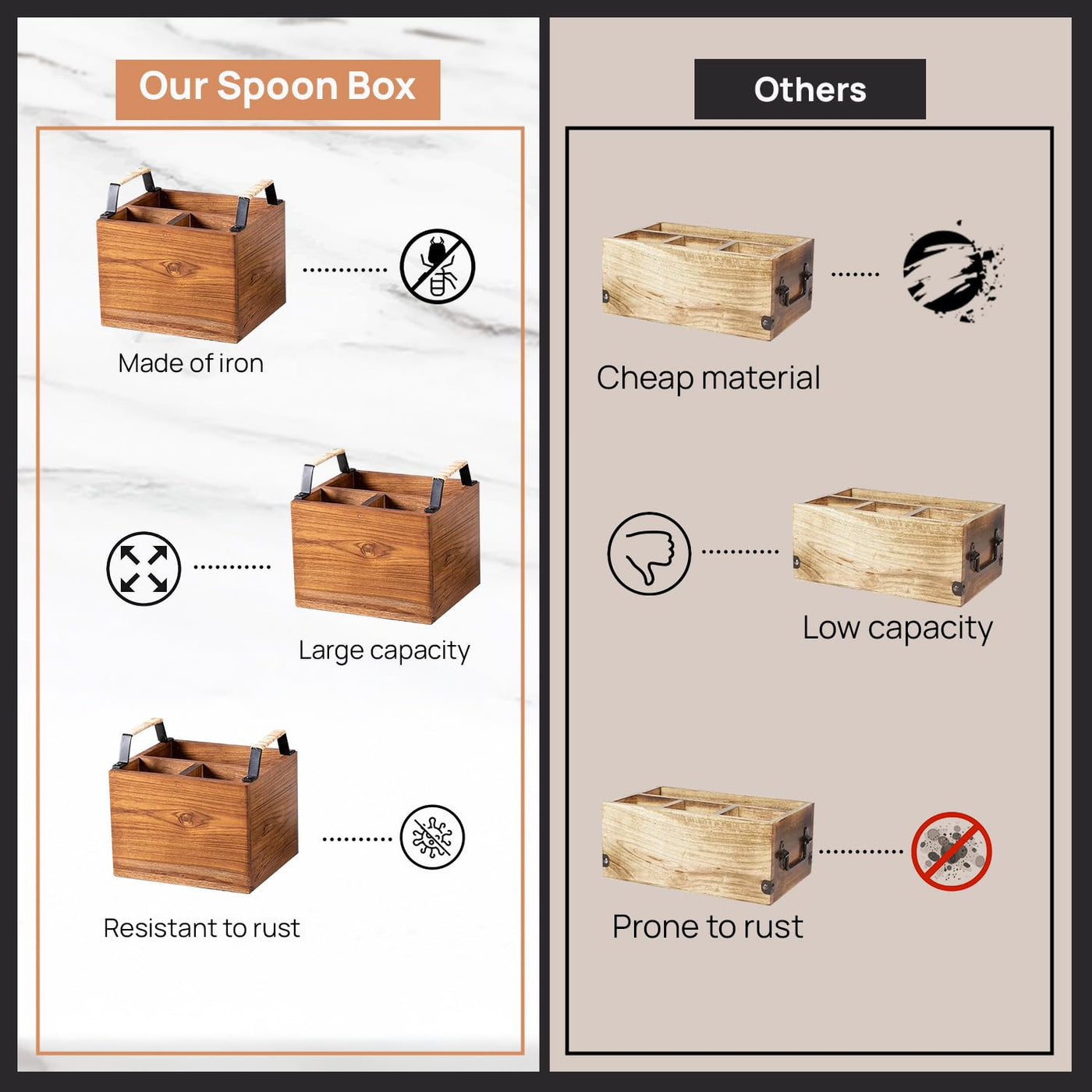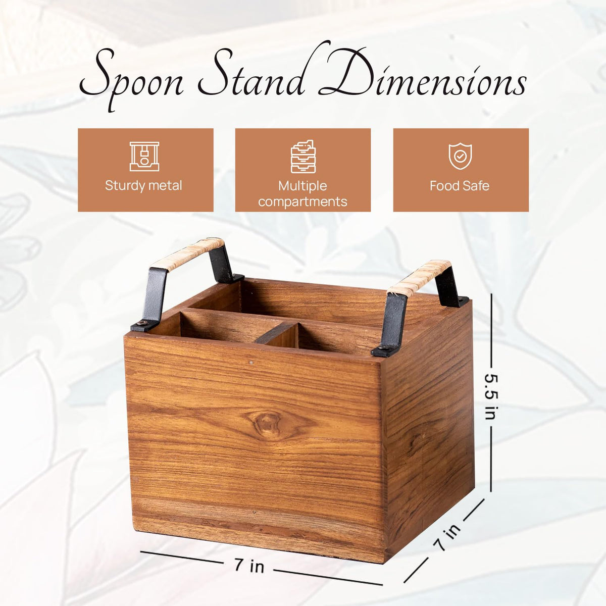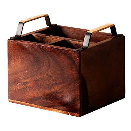 nestroots Spoon Stand with for Dining Table | Wooden cutlery holder multipurpose Diwali or Deepawali Gifts Iron Handles Black wi