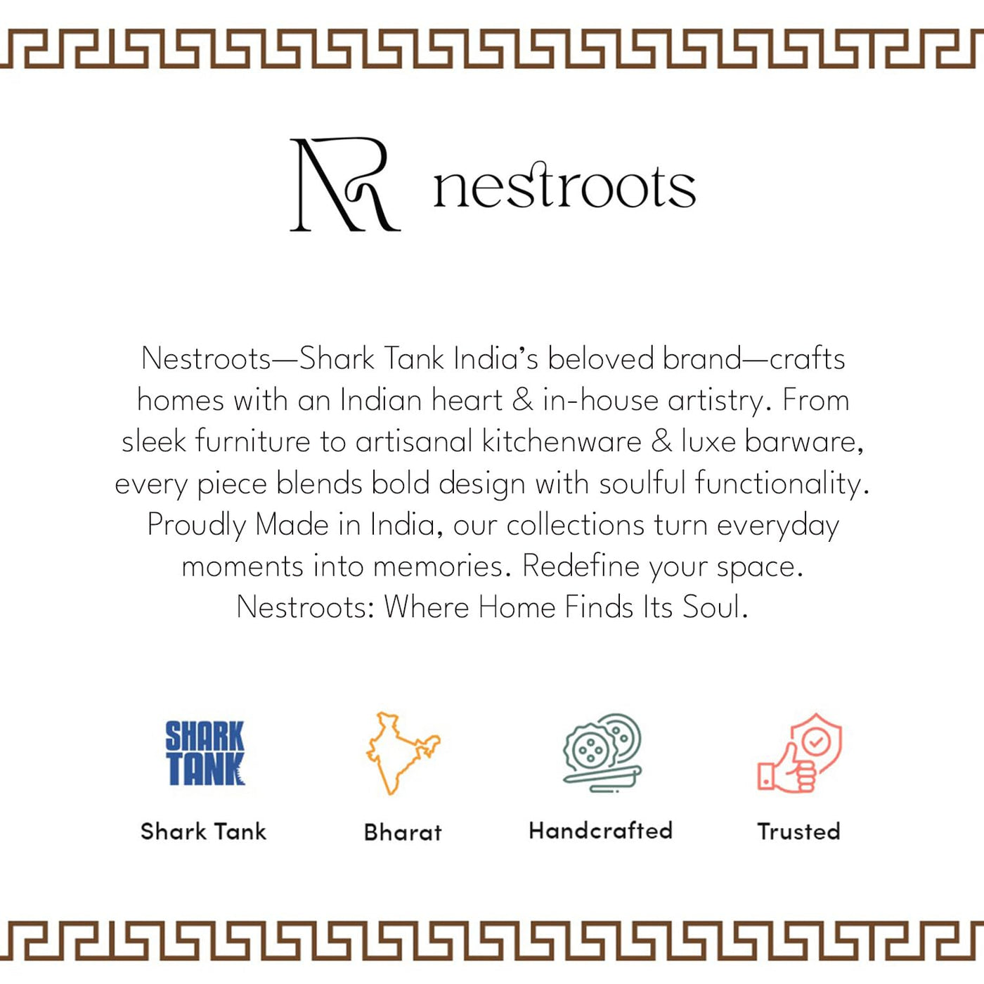 ? OUR STORY: Nestroots is a dream house of design, aesthetics and elegance. We are a Home Decor Brand dealing in Decoration, Furniture, Kitchen & Dining, Tableware, Serveware & Barware products. ?? ...