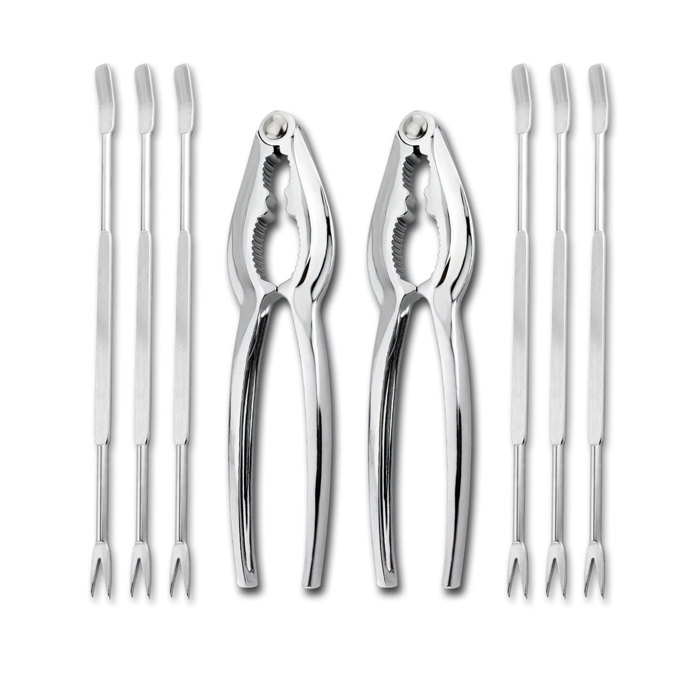 • Q: How do the lobster crackers work for different types of shellfish? A: The lobster crackers are built with jagged teeth and a strong grip, making them effective for cracking lobster, shellfish, oysters, crab shells, and even nuts.