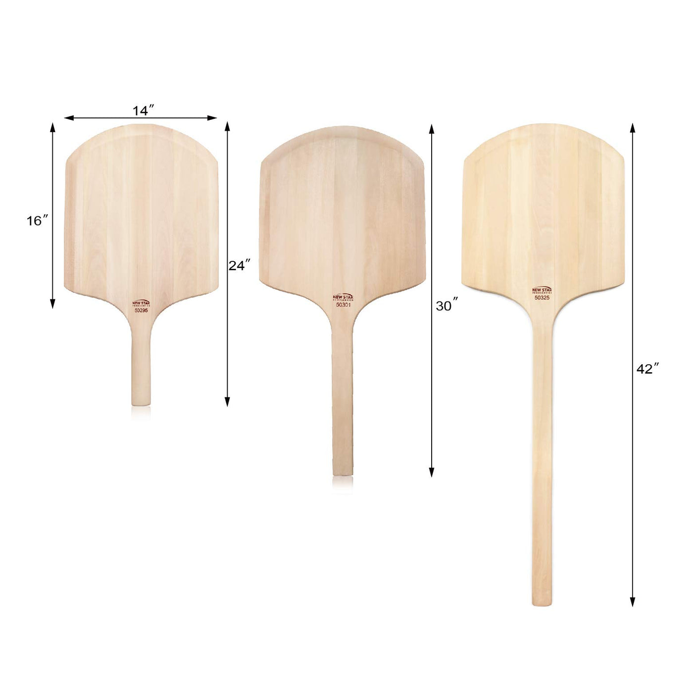 New Star Foodservice 50295 Restaurant-Grade Wooden Pizza Peel, 16'' L X 14'' W Plate, With 10'' L Wooden Handle, 24'' Overall Le