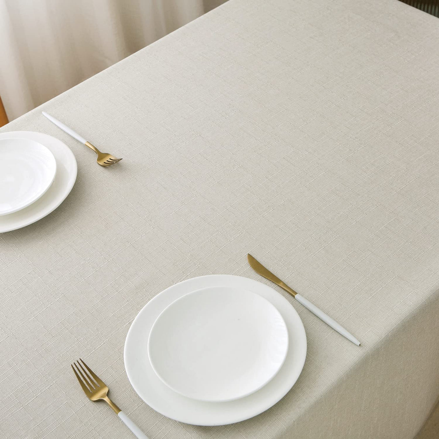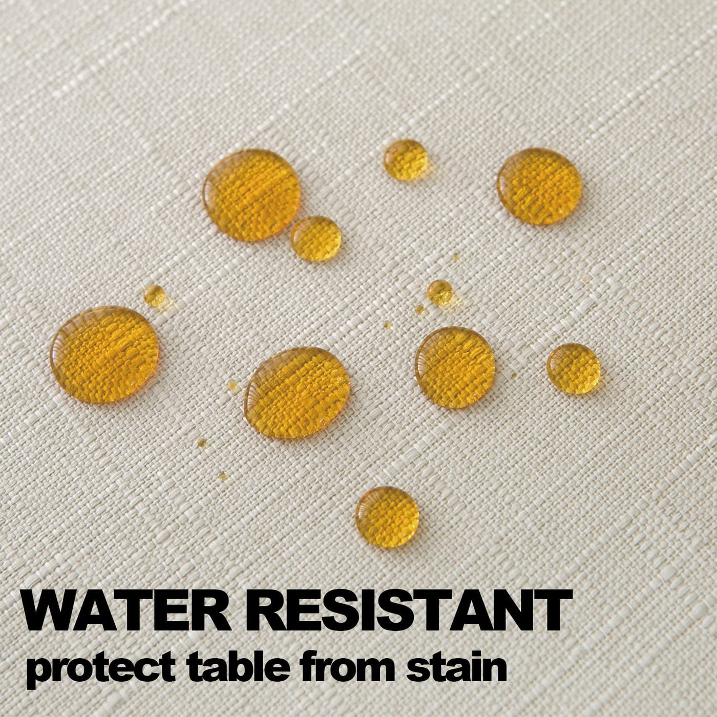 - Q: Is the tablecloth water resistant? A: Yes, the tablecloth is made from faux linen fabric that is water resistant, helping to protect your table from spills.