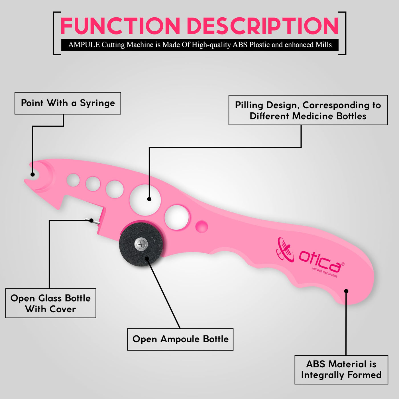 OTICA Ampoule Cutter for Doctors Nurse, Glass Bottle Cap Remover Cutter Ampule Breaker for Hospital and Clinic (Pink)