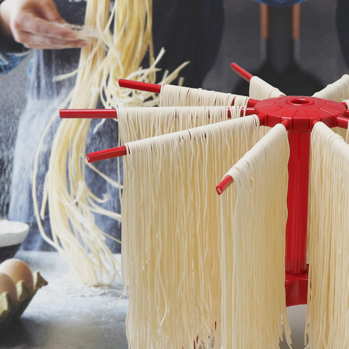- Q: How stable is the drying rack during use? A: The rack features 4 rubber feet that enhance its stability while drying noodles.