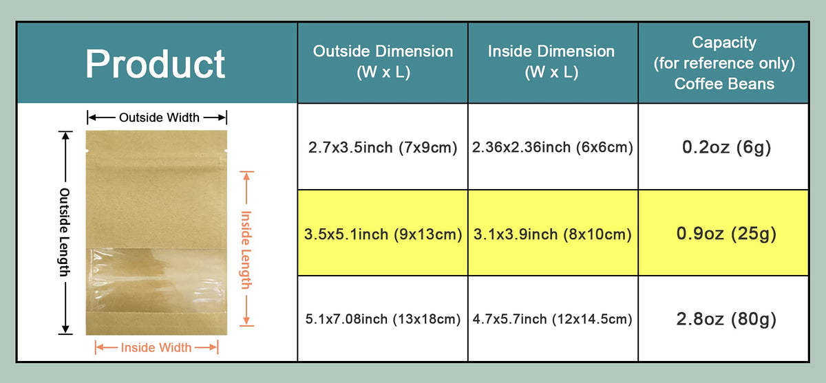 • Q: What are the dimensions of the PABCK clear window brown kraft paper bags? A: The bags have an outside size of 3.5 by 5.1 inches and an inner size of 3.1 by 3.9 inches.