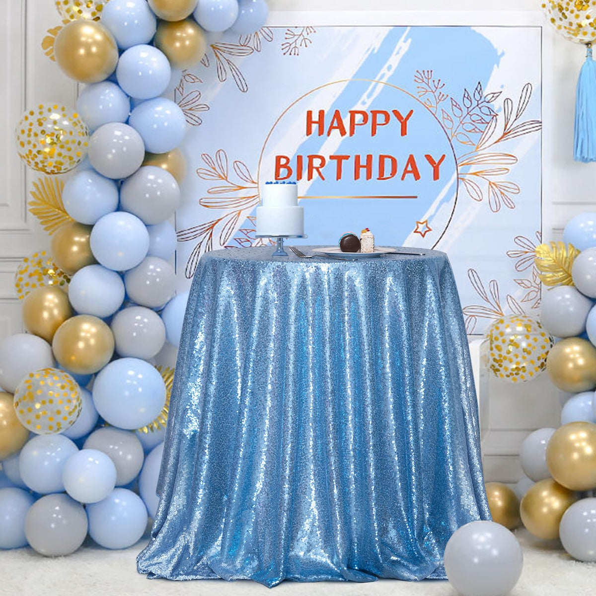 Partydelight Sequin Tablecloth, Christmas Tree Skirt, Sequin Table Overlay Square, 50''X50'', Baby Blue