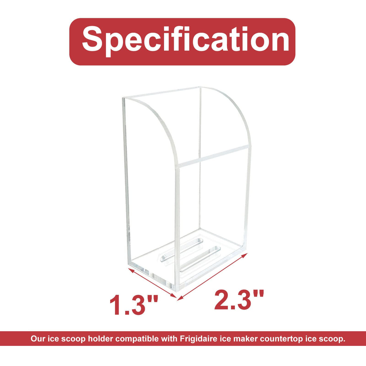 - Q: What are the dimensions of the ice scoop that fits in this holder? A: The holder is designed to accommodate ice scoops that are 2.3 inches wide and 1.3 inches thick.