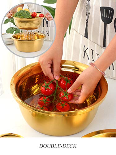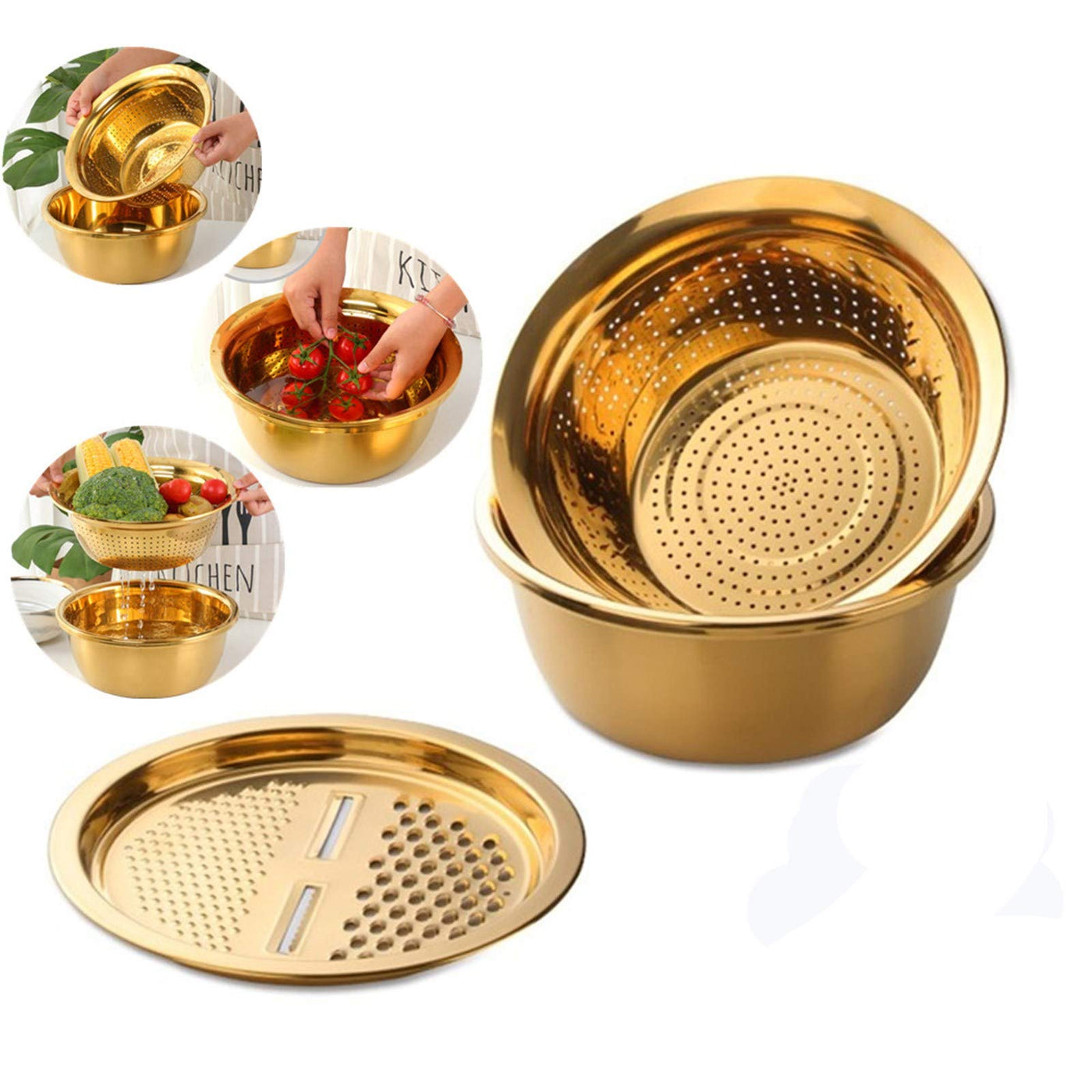 Qobimoon 3Pc/Set Colander Set Stainless Steel Vegetable Slicer Fruit Potato Peeler Carrot Grater Strainer Utensil Round Rice Was
