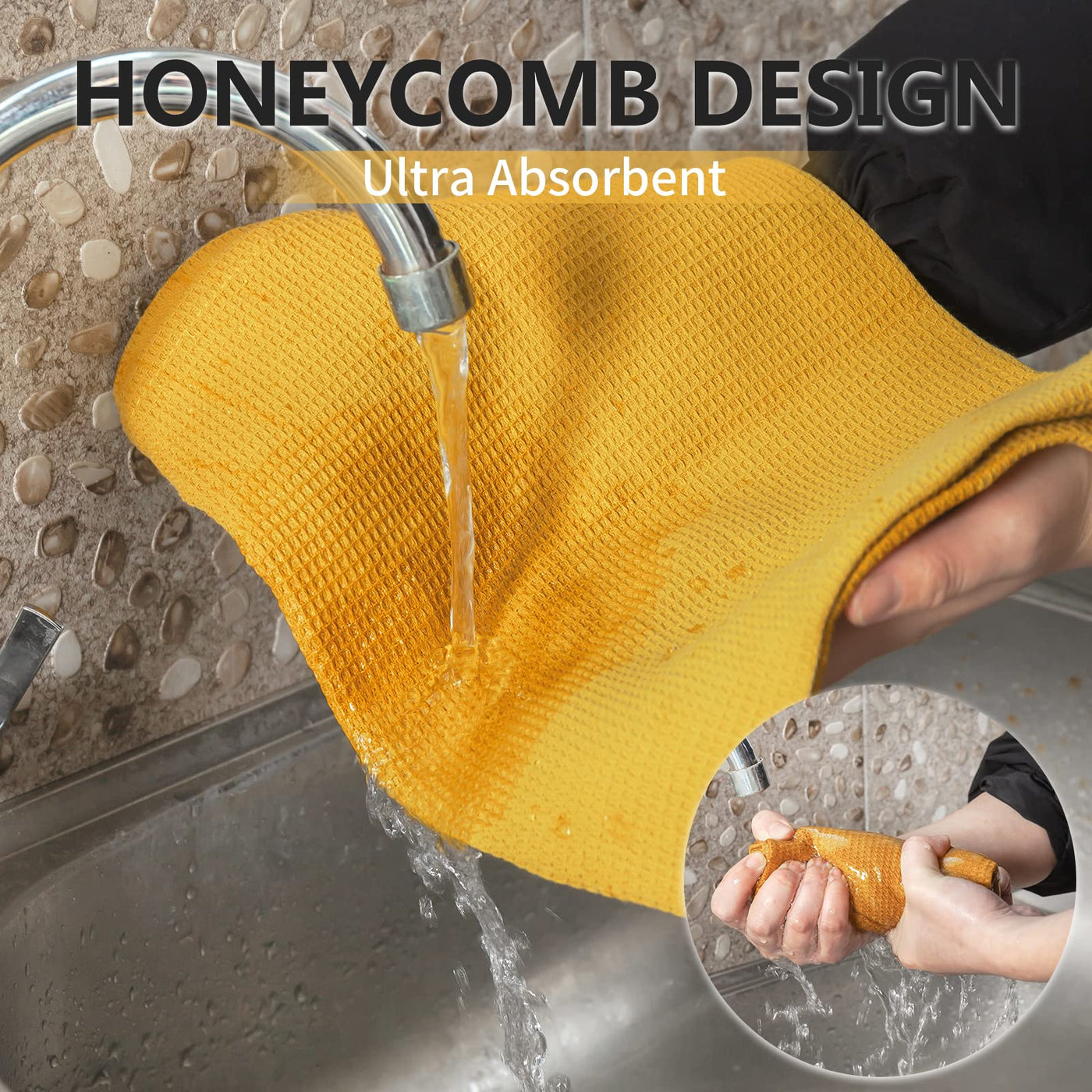 - Q: How absorbent are these kitchen towels? A: These towels feature a hollow honeycomb weave design that makes them super absorbent, ideal for drying and cleaning tasks.