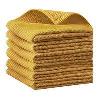 - Q: How many towels are included in the set? A: The set includes six dish towels in a solid mustard yellow color combination.