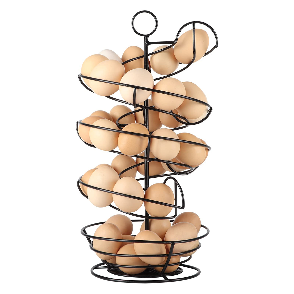 Qutrey Black Metal Egg Skelter With Storage Basket, Spiral Design Egg Holder For Large Egg For Countertop, Kitchen
