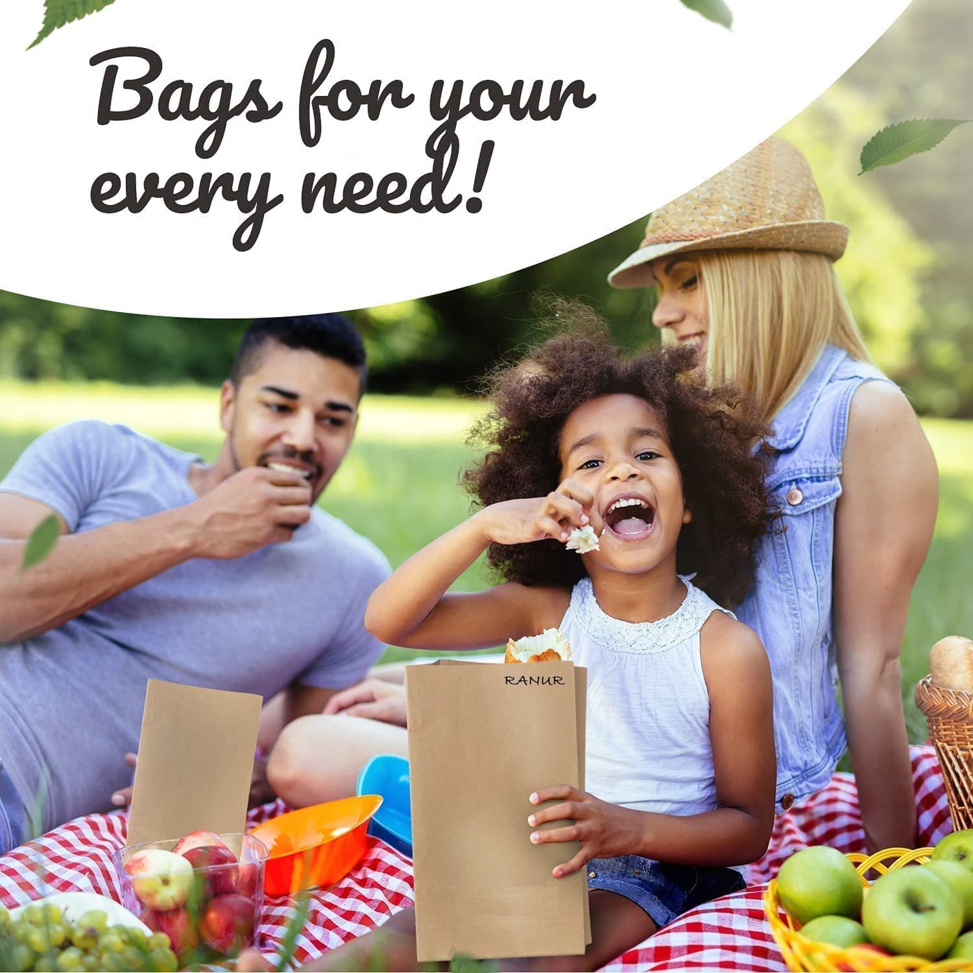 Ranur Large Square Bottom Or Flat Bottom Paper Bags Made Of Brown Fold Top Craft Paper,Size 6 X 4 X 12 Pack Of 100 Pieces