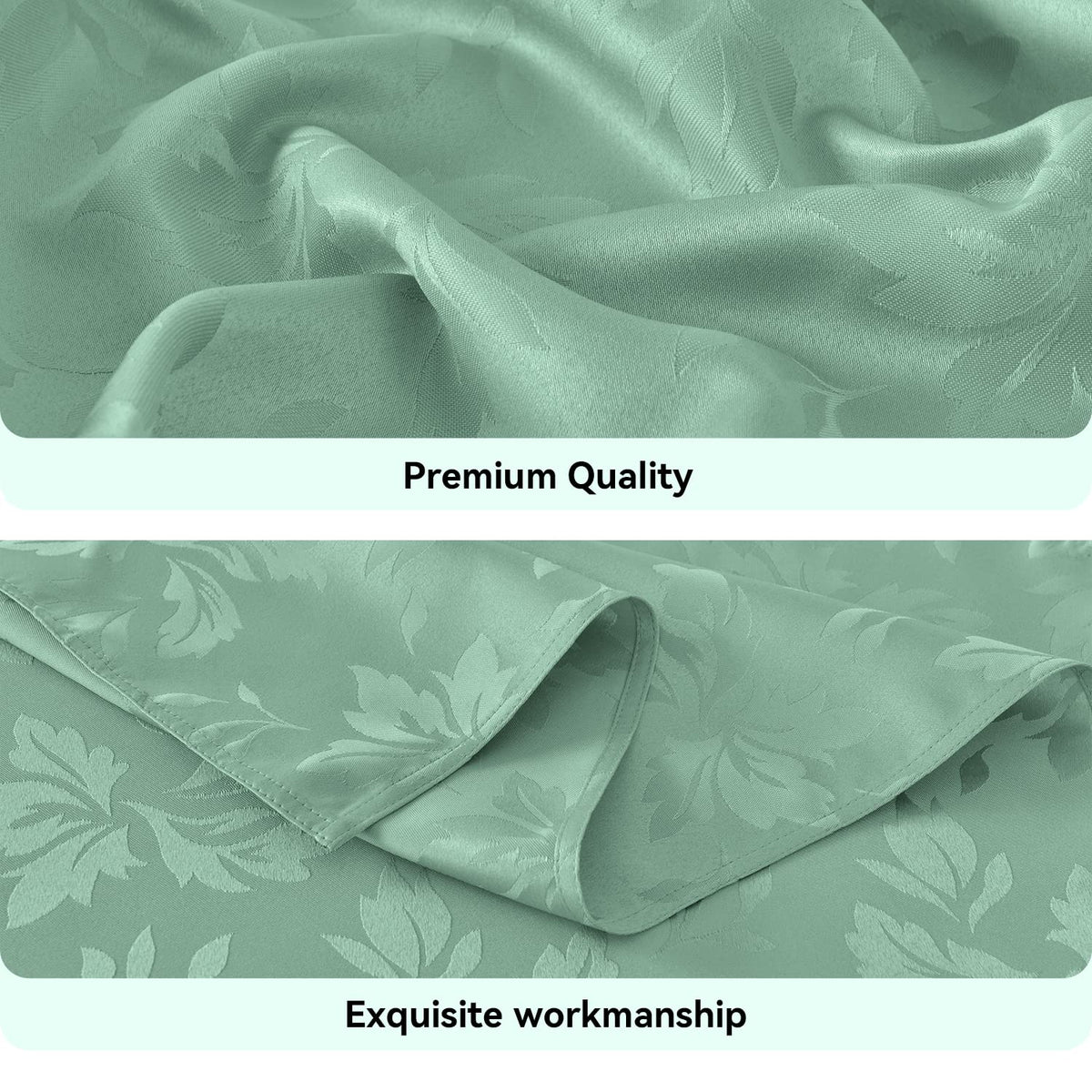 • Q: Does the tablecloth have a design? A: Yes, the tablecloth features an elegant floral design inspired by flowers and leaves, adding a touch of beauty to your dining setup.