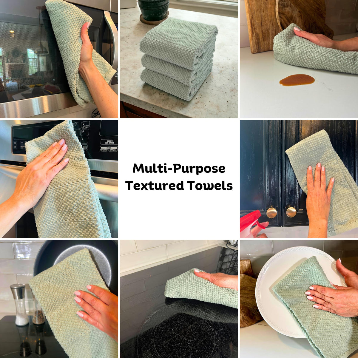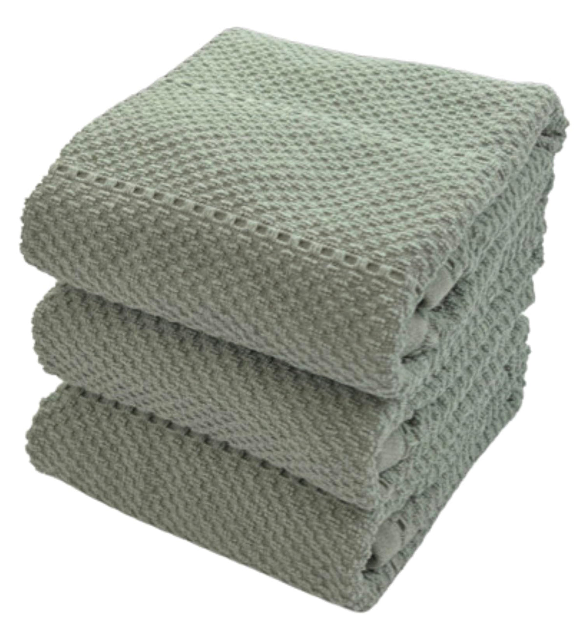 Sage Green Kitchen Dish Towels: 100% Cotton Cloth Soft Cleaning Drying Absorbent Textured Terry Loop, Set Of 3 Multipurpose For