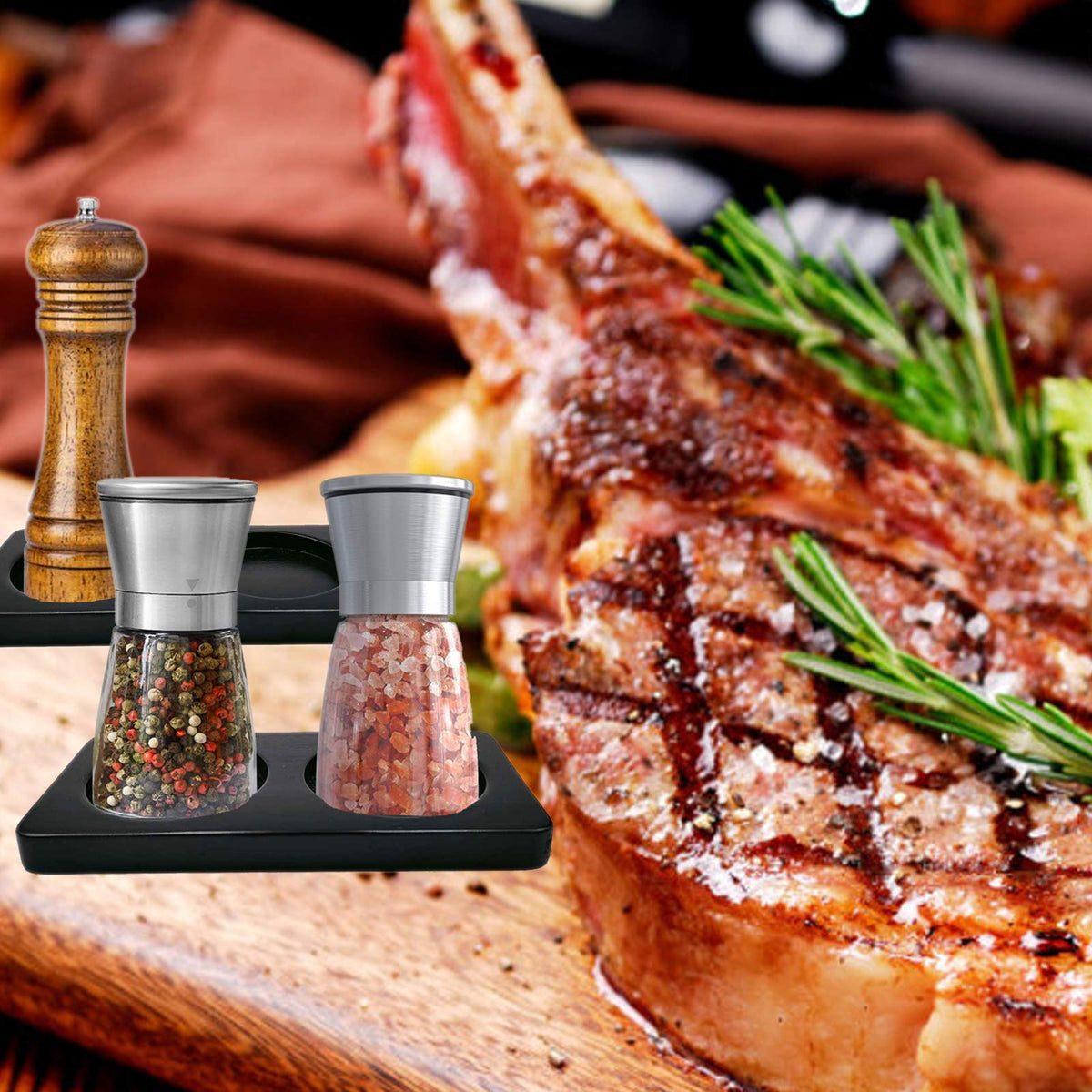 • Q: Can the tray accommodate all types of salt and pepper grinders? A: Yes, the large size of the tray is suitable for all brands of salt and pepper grinders.
