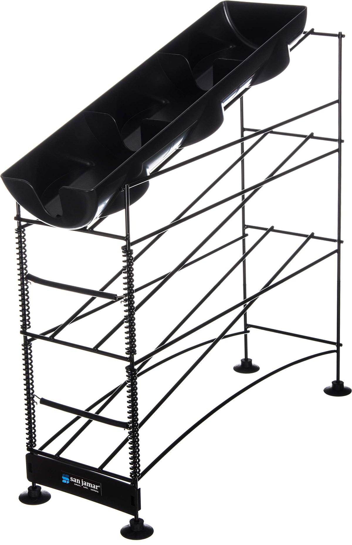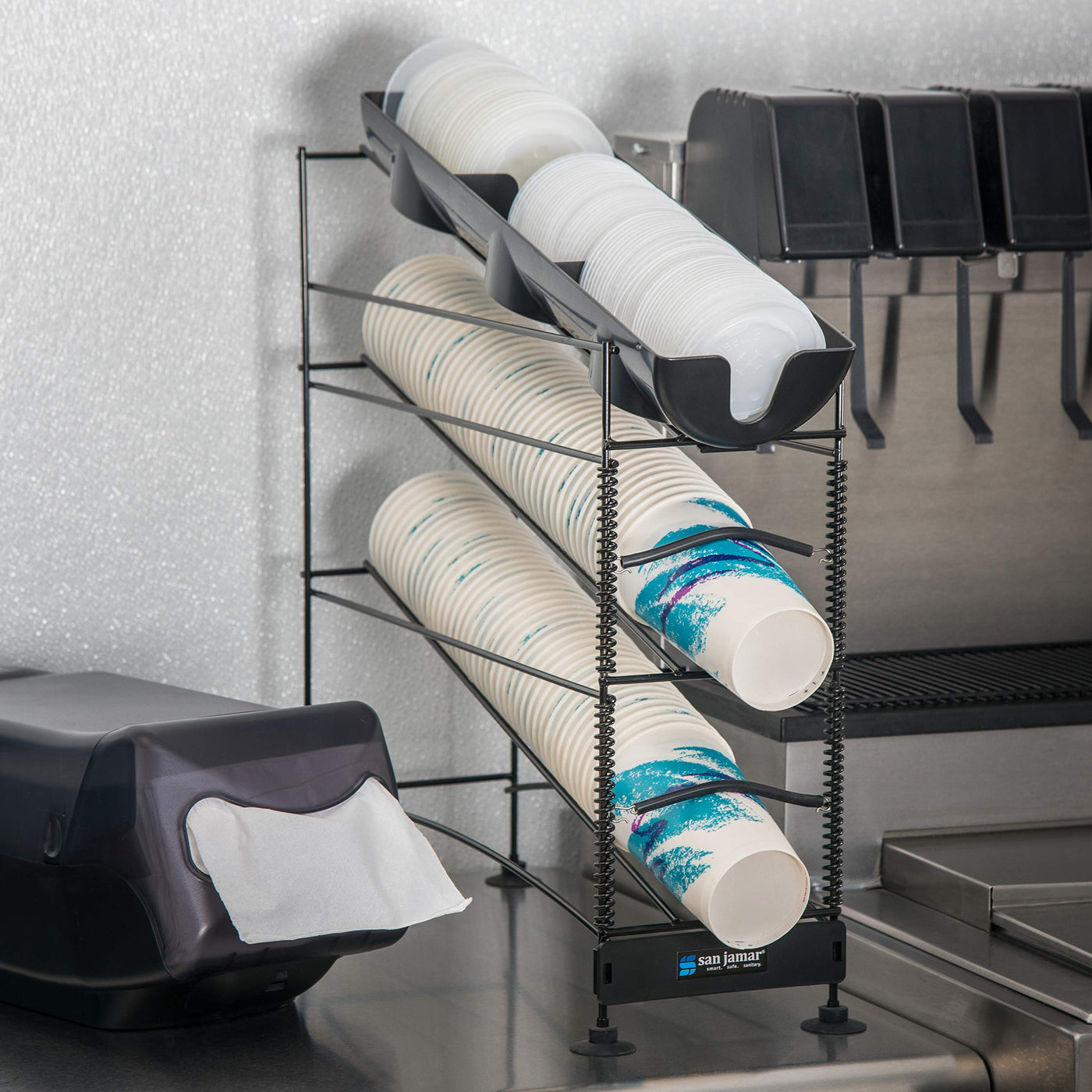 San Jamar Wireworks Cup And Lid Dispenser Fits 8 - 44 Oz. Cups, 4 Tiers With Suction Cup Feet For Restaurants, Fast Food, And Ki
