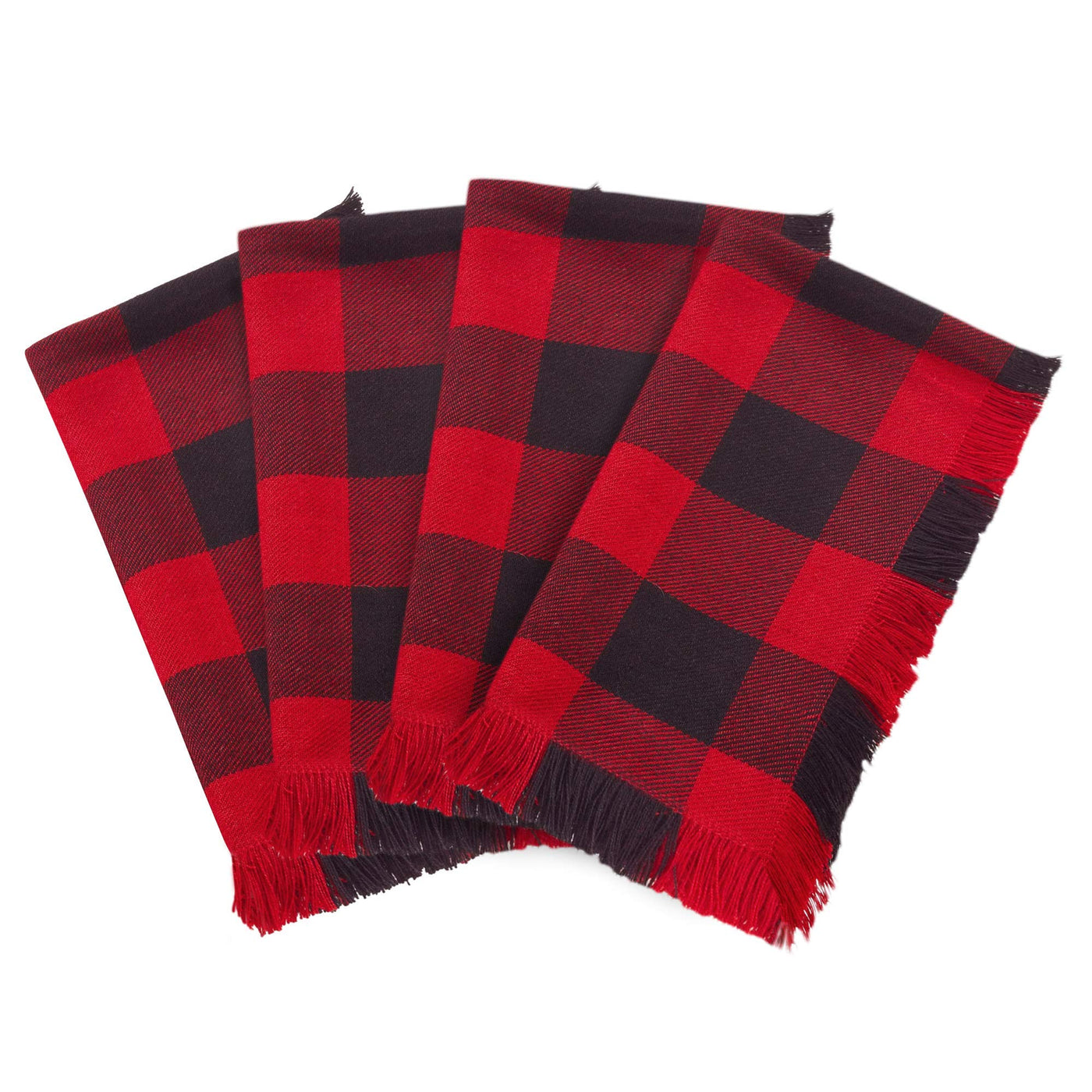 Saro Lifestyle Red Fringed Buffalo Plaid Napkin - 20'' Square - 4 Ct.