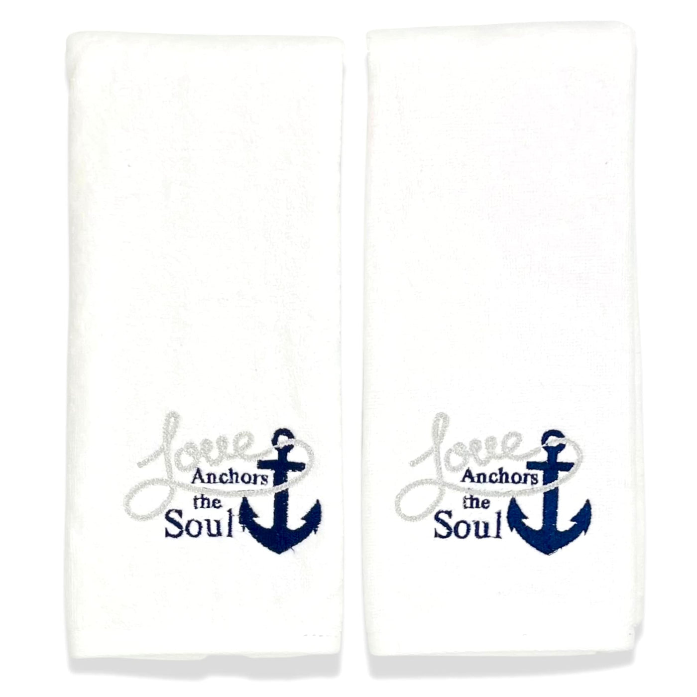 Serafina Home Nautical Ocean Guest Hand Towels: Coastal Love Anchors The Soul, 2 Piece Soft Absorbent