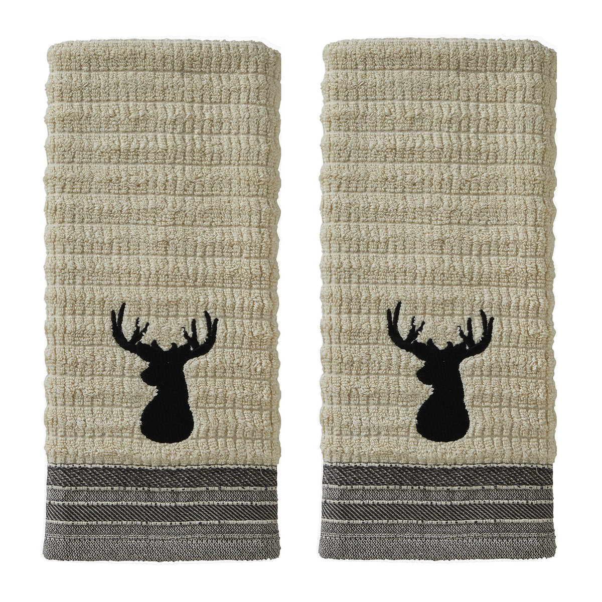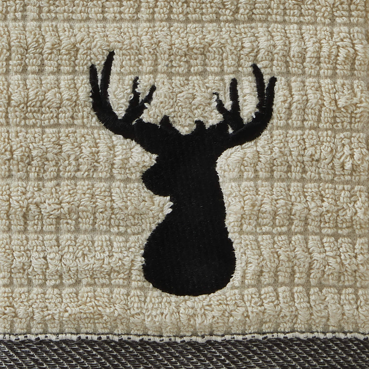 • Q: What kind of embroidery is featured on the towels? A: The towels feature an embroidered design of a deer, adding a rustic touch to their overall look.