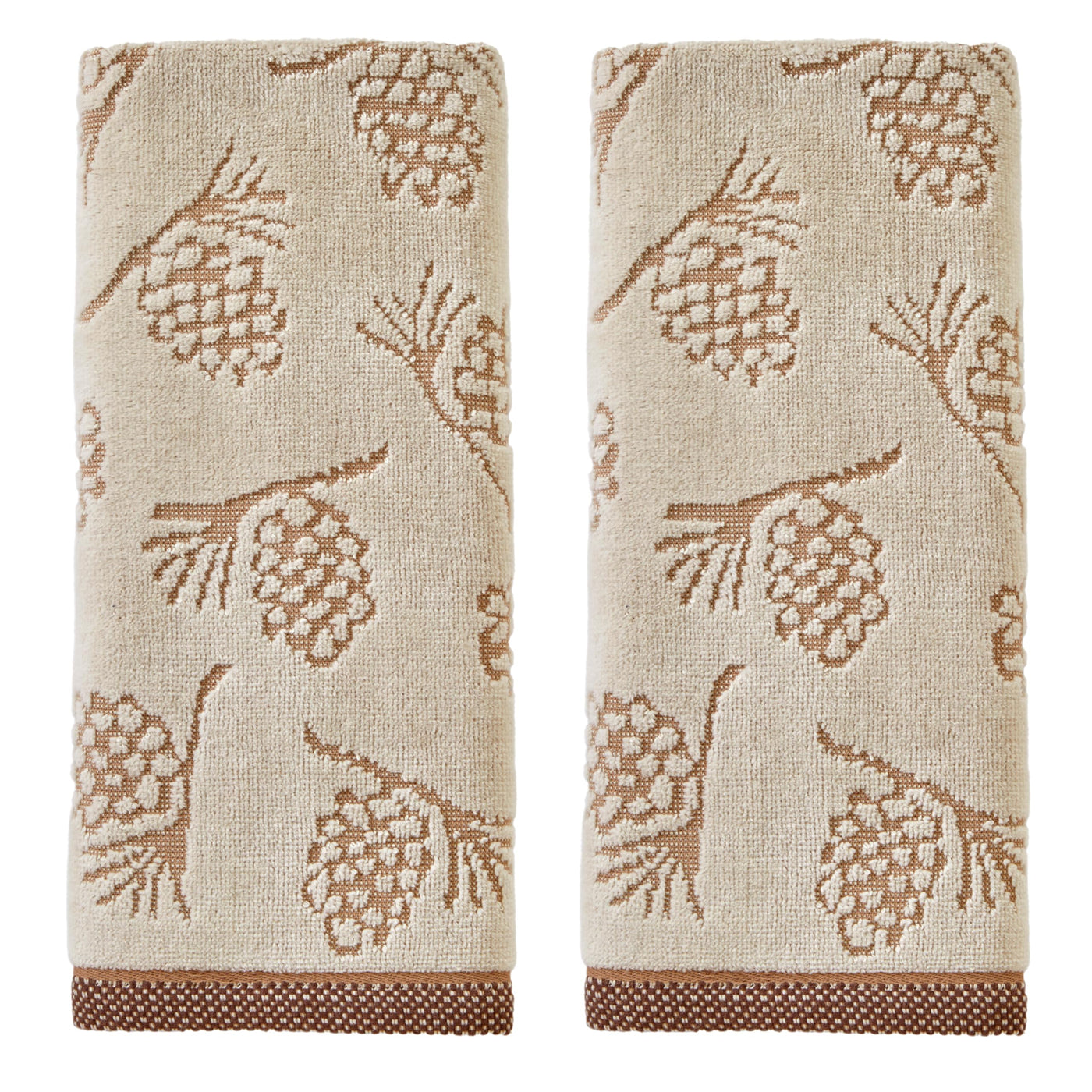 Skl Home Fall/Winter/Christmas Pinecone Jacquard Hand Towel 2Pc Set For Bath/Kitchen/Bar & Gift, Wheat