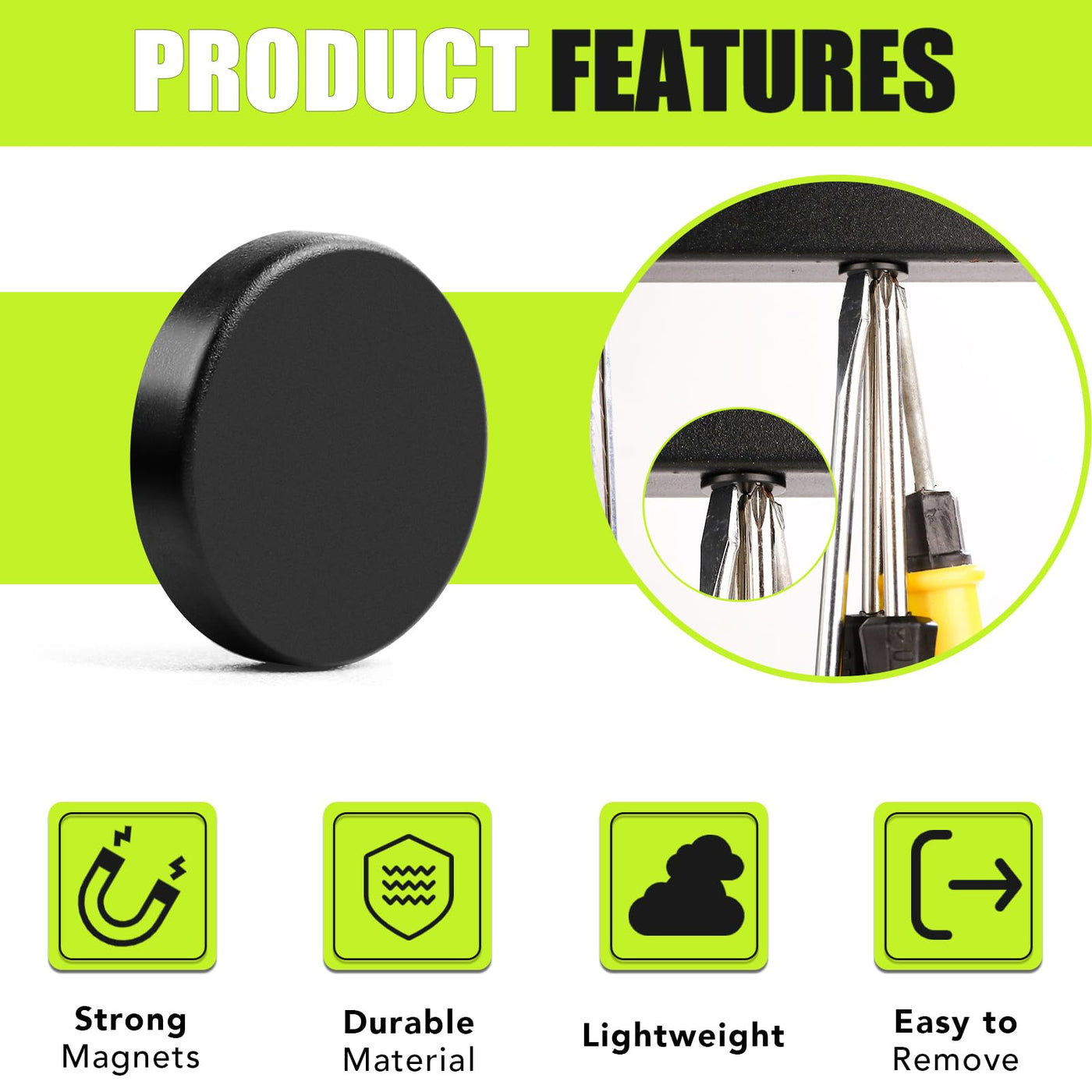 • Q: How do I remove the magnets without damaging surfaces? A: Each magnet has a smooth surface, allowing for easy disassembly without scratching the surfaces they are attached to.