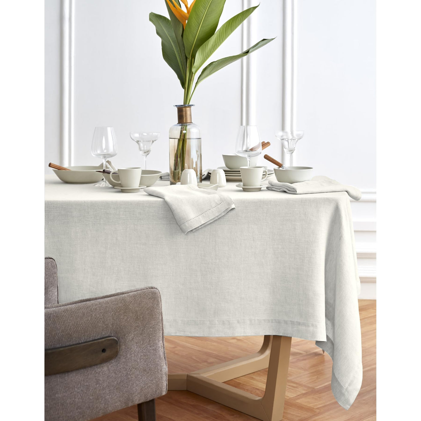 - Q: Can I mix and match this tablecloth with other products? A: Yes, you can create a monochromatic or mix-and-match look by coordinating with other products from the same collection.