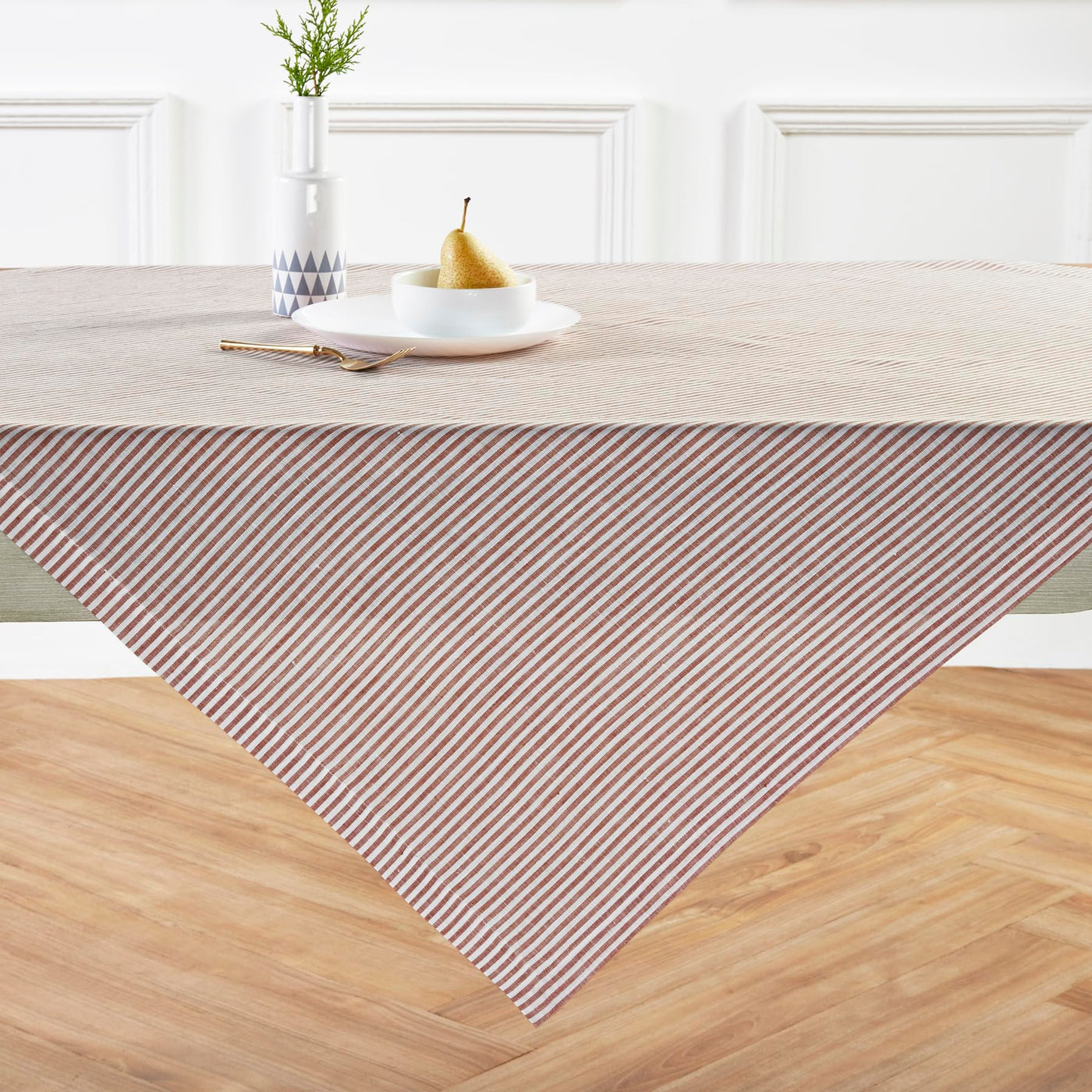 Solino Home Stripe Linen Tablecloth - 100% Pure Linen Cinnamon And White Tablecloth 120'' L X 60'' W For Spring - Handcrafted An