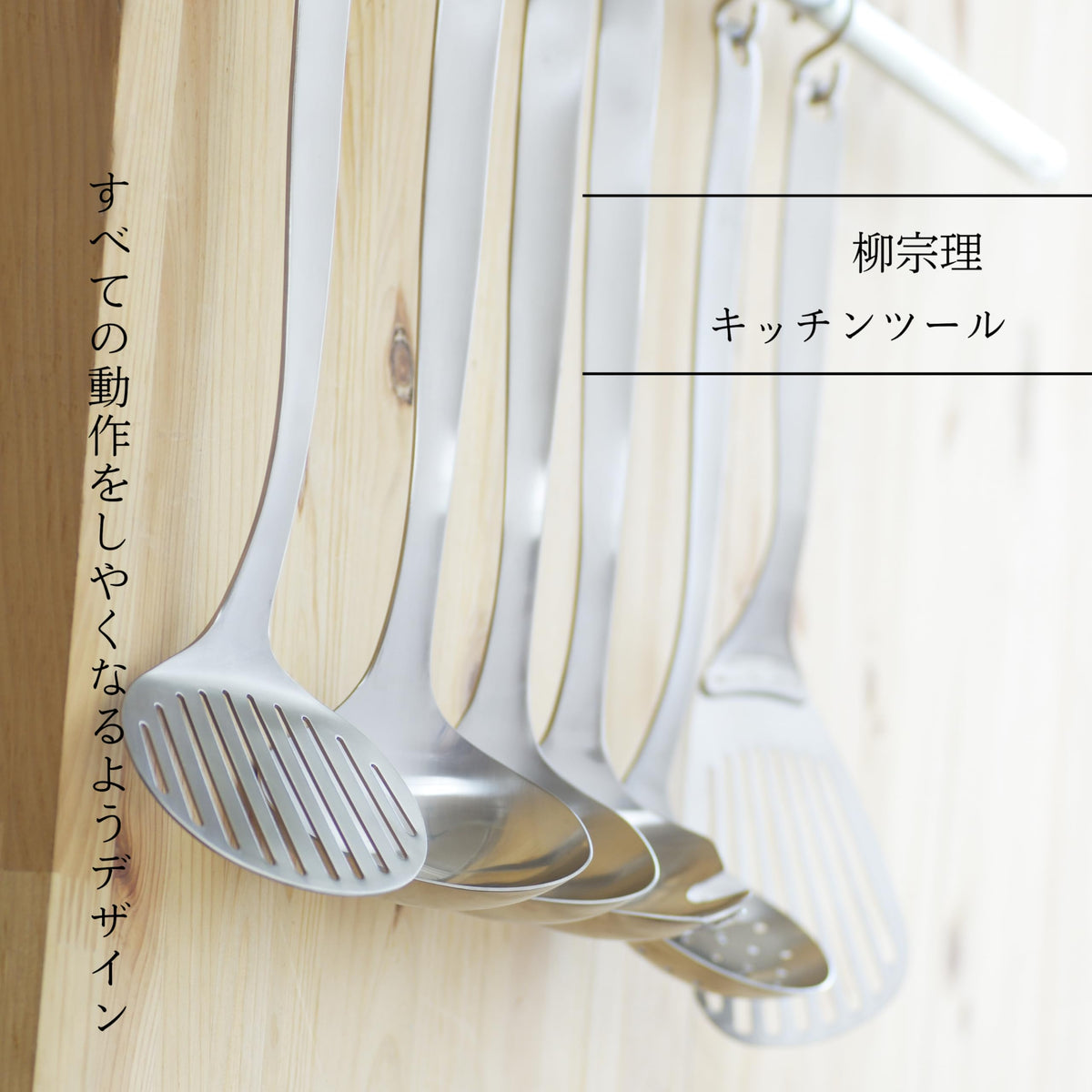 Sori Yanagi Kitchen Tool Designed Simple And Easy To Use, Tsubamesanjo Stainless Steel, Set Of 3 Turner, Skimmer, Ladle, Dishwas