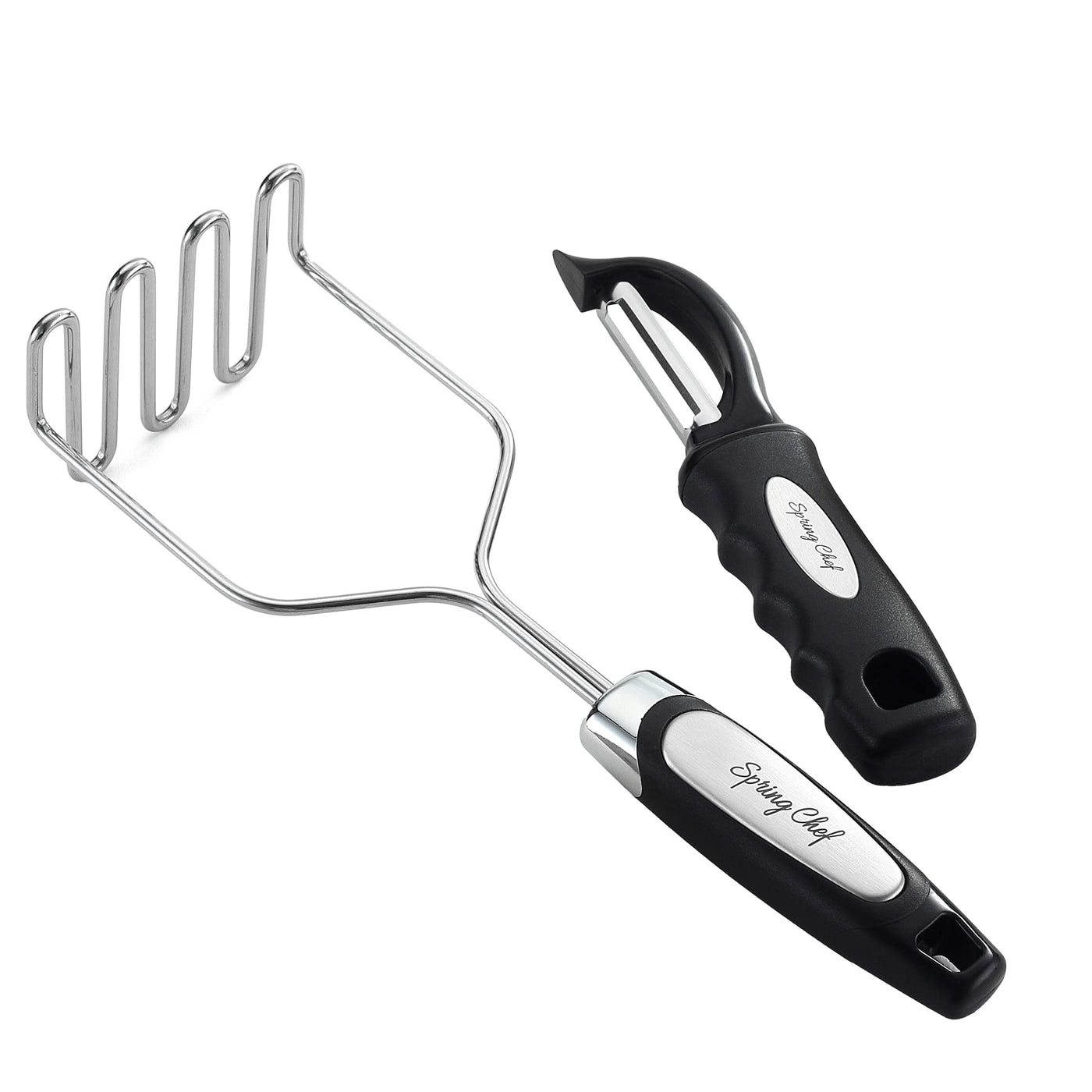 Spring Chef Stainless Steel Potato Masher With Premium Vegetable Peeler, Mashed Potato Masher - Kitchen Tool With Soft Non-Slip