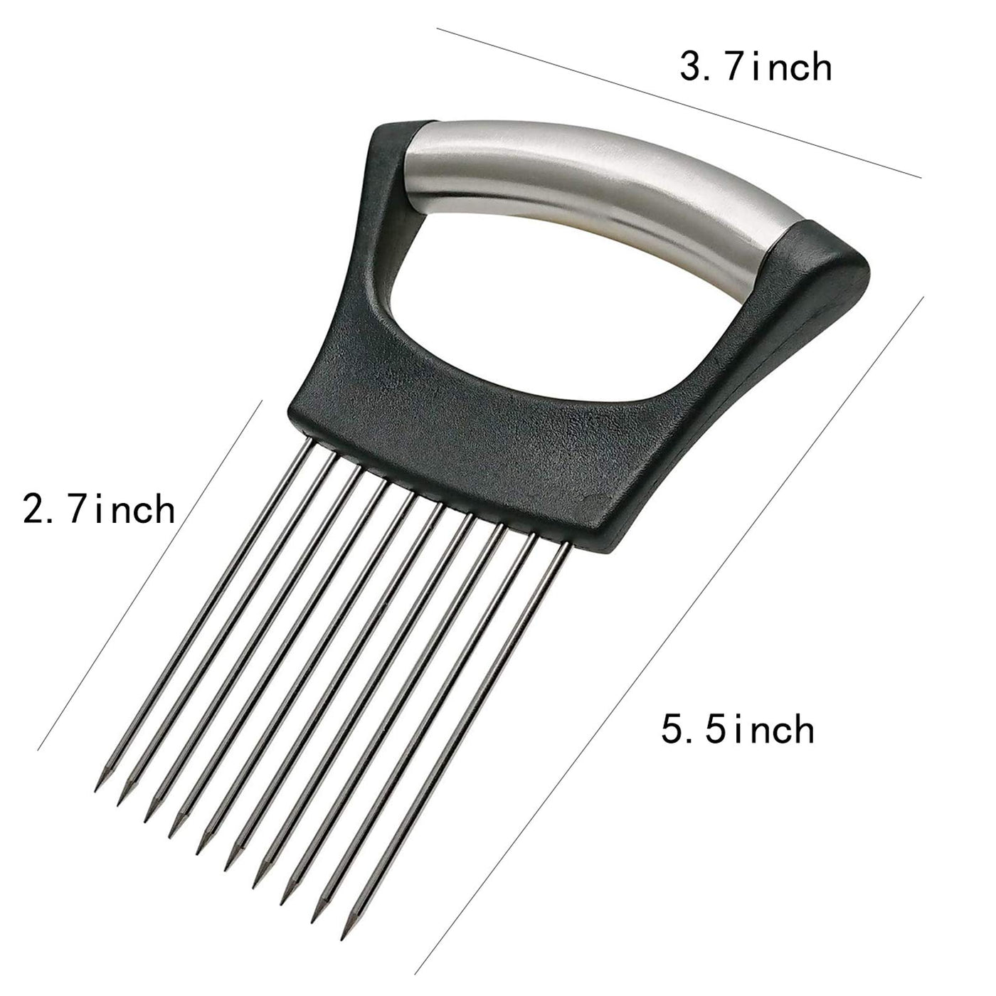 - Q: What materials are used in the construction of the Onion Holder? A: The Onion Holder is made of sharp stainless steel for the fork tines and features an extra thick, non-slip plastic handle for comfortable grip during use.